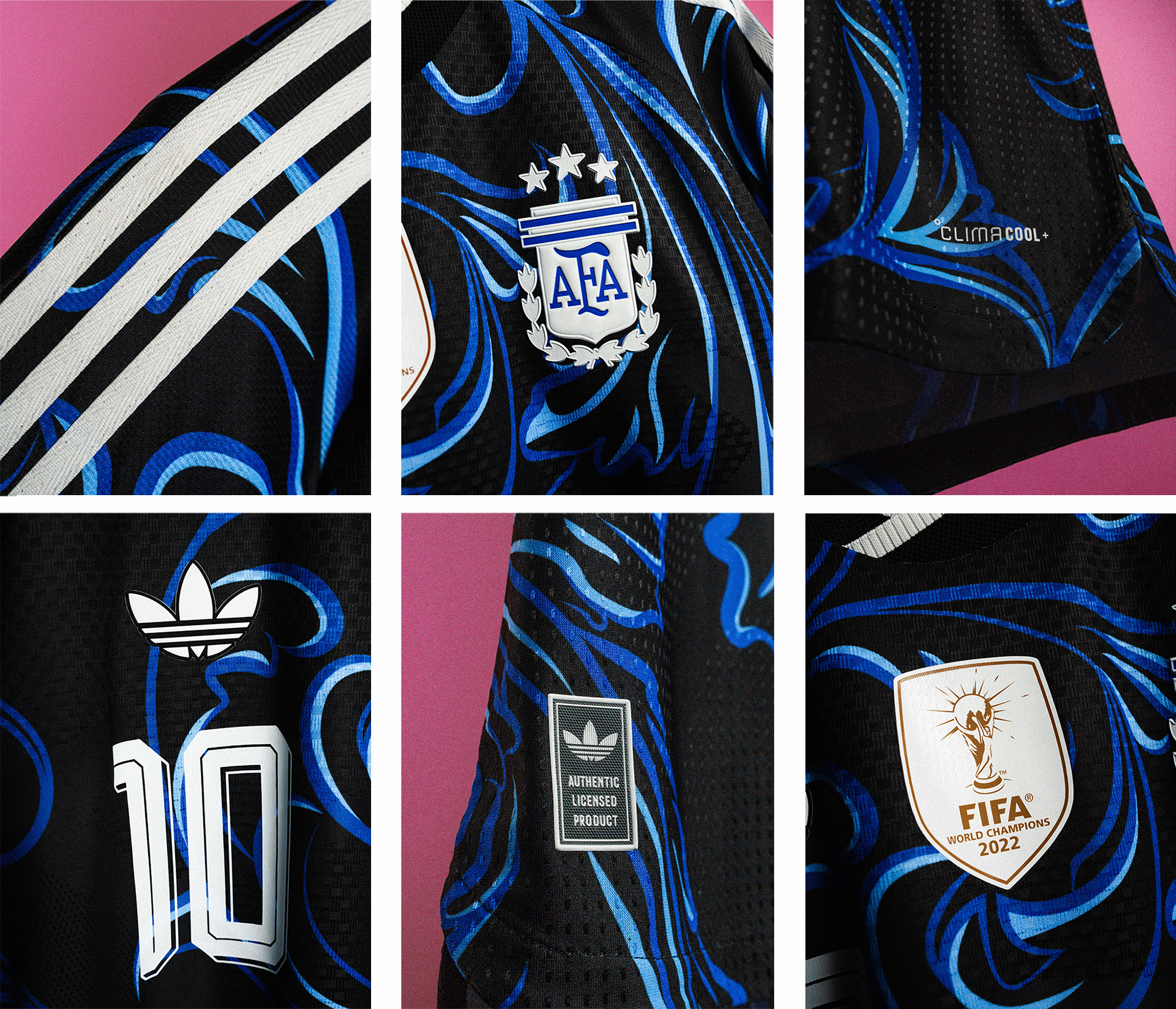 阿根廷主场球衣延续经典蓝白直条纹,以蓝色渐层重新演绎传统条纹上衣,设计灵感源自 1978 、 1986 与 2022 年三度夺下世界杯冠军时的代表性战袍,后领印有「 1893 」字样,向阿根廷足球协会成立年份致敬,这次并同步推出阿根廷传奇球星梅西的 10 号球员版及复刻版主场球衣,邀请球迷一同穿上传奇 10 号球衣,为阿根廷队应援。