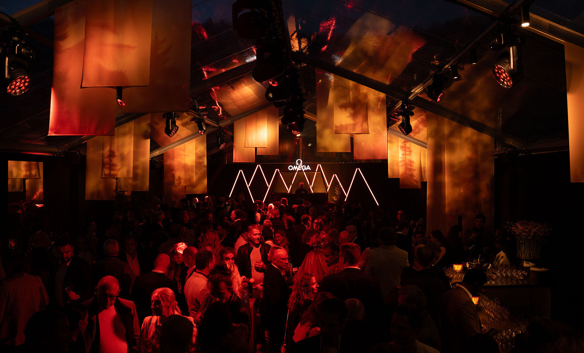L’Arnouva 坐落于 Crans-Montana 高尔夫果岭之上,是滑雪与徒步爱好者的天堂,四季皆可欣赏令人叹为观止的壮丽风光。当晚,宾客乘坐缆车抵达晚宴现场,共同庆祝 OMEGA大师赛的成功举行。 从 2001 年起,OMEGA 便担任这项高尔夫赛的冠名赞助商,如今,这一深厚的合作已长达 24 年。