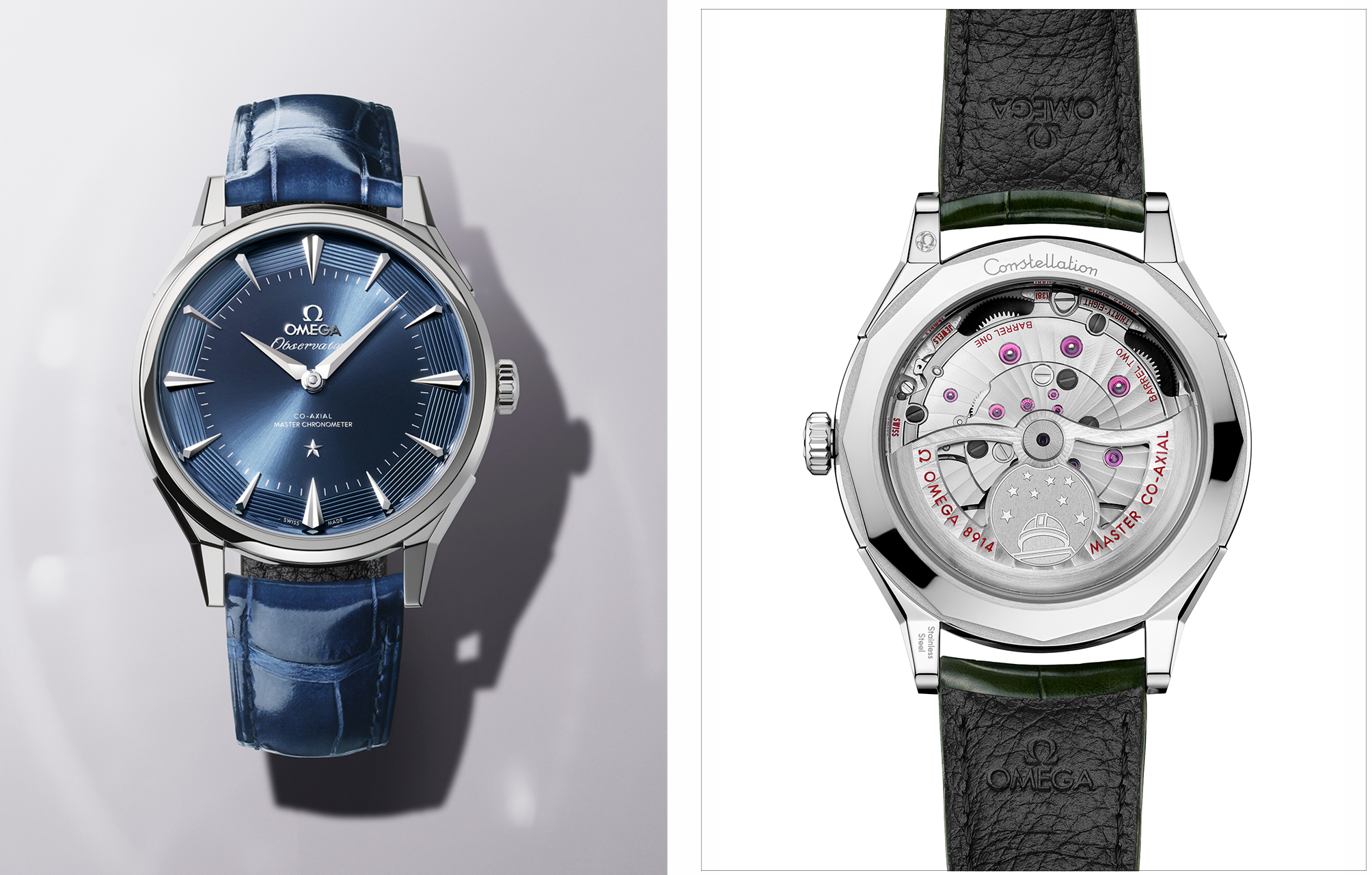 而在 Luxe 等级中,OMEGA 更首度历史性地采用 18K Moonshine™ 金打造自动盘与摆轮桥板,结合阿拉伯风格的日内瓦波纹处理,将金属的色泽与光影对比发挥到极致。即便是搭载于 O-MEGASTEEL 錶款的 Calibre 8914 Standard 机芯,亦同样承袭了这套划时代的认证体系,确保每一枚时计在面对 15,000 高斯强磁场与各种极端环境下,依然能保持无可挑剔的走时精度。