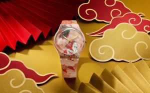 SWATCH 全新 Riding The Clouds 表款上共有黑白两匹骏马,一上一下、朝左右各自奔驰而去;骏马不仅散发炽热火焰,更象征阴阳太极、生生不息,而整体的绯红色调则象征从传统神话中得到灵感的辟邪护红色手绳。