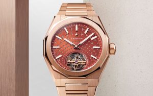 ZENITH 这款 DEFY Skyline Tourbillon 腕錶让人想到力洛克 ( Le Locle ) 制錶厂的精密制作, 将 ZENITH 的工艺根源与当代风格融入腕上, 呼应其独特的红白砖砌外观,将品牌传承与尖端创新紧密连结。