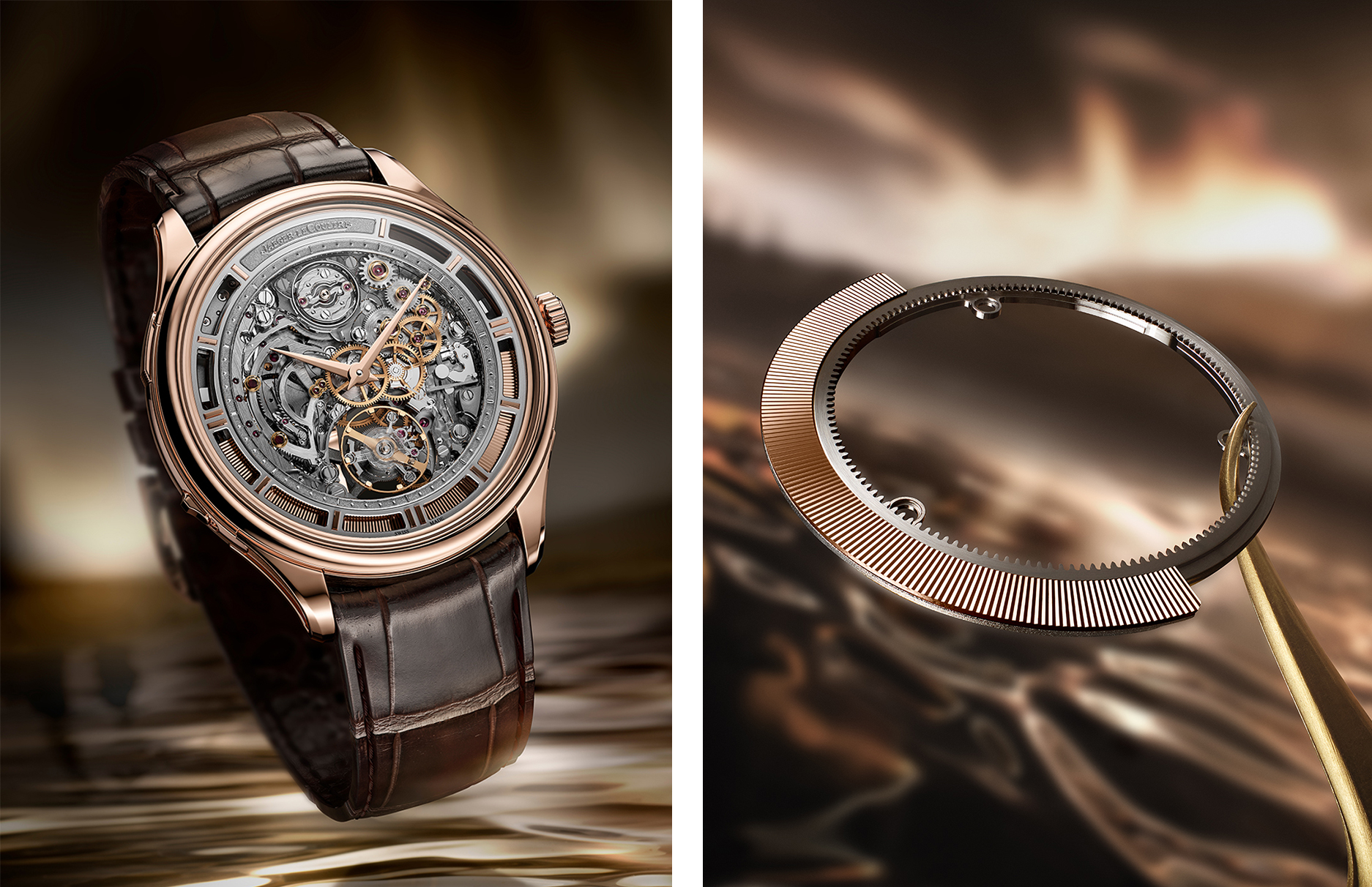 如果说三轴陀飞轮是在挑战空间,那另一款 Master Hybris Mechanica Ultra Thin Minute Repeater Tourbillon,就是在挑战「 厚度 」与「 声音 」。 这只手錶搭载的 362 机芯,其实早在 2014 年就已经震撼业界,但放到 2026 年,它依然站在巅峰,整体厚度仅 8.25mm,机芯本身更只有 5mm,却同时容纳飞行陀飞轮与三问报时机制,这种结构难度远高于一般模组叠加设计,关键在于它从一开始就把报时机构纳入整体架构,而非后加,再加上环形自动盘设计,成功压缩垂直空间,让「 超薄 」不只是数字,而是真正的工程成果。