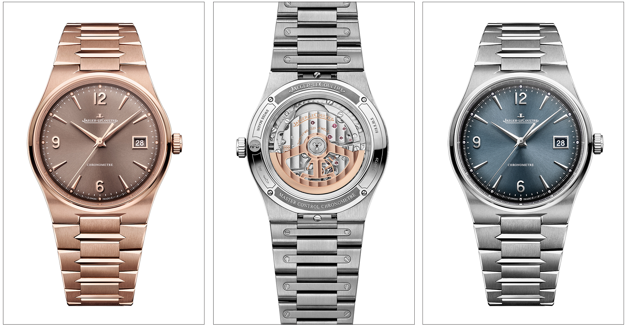 2026 年的另一个重点,是 Master Control 系列的转变, Jaeger-LeCoultre 这次推出的 Master Control Chronometre,不只是新款,而是整个系列设计逻辑的更新,最明显的改变,是一体式金属鍊带,从錶壳延伸到鍊带的流线设计,让整体视觉更加一致,鍊节造型甚至呼应太子妃指针,这种细节其实很难做,但做出来就会很完整。
