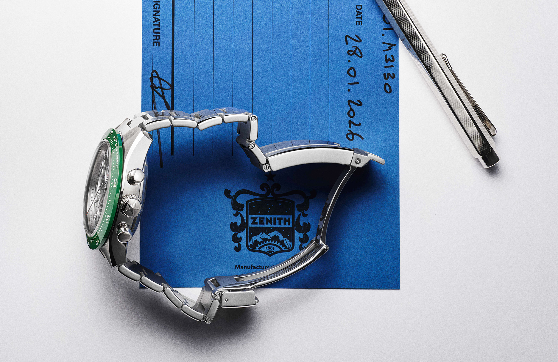 除了视觉上的飨宴,真力时在功能细节上也展现了与时俱进的野心。 随之亮相的全新专利 ZENCLASP™ 摺叠式錶扣,是品牌历时三年、耗费 1,800 小时研发的成果。 这款錶扣由 41 个精密组件构成,并巧妙运用了陶瓷滚珠强化元件,确保锁定的稳定性与顺畅感。