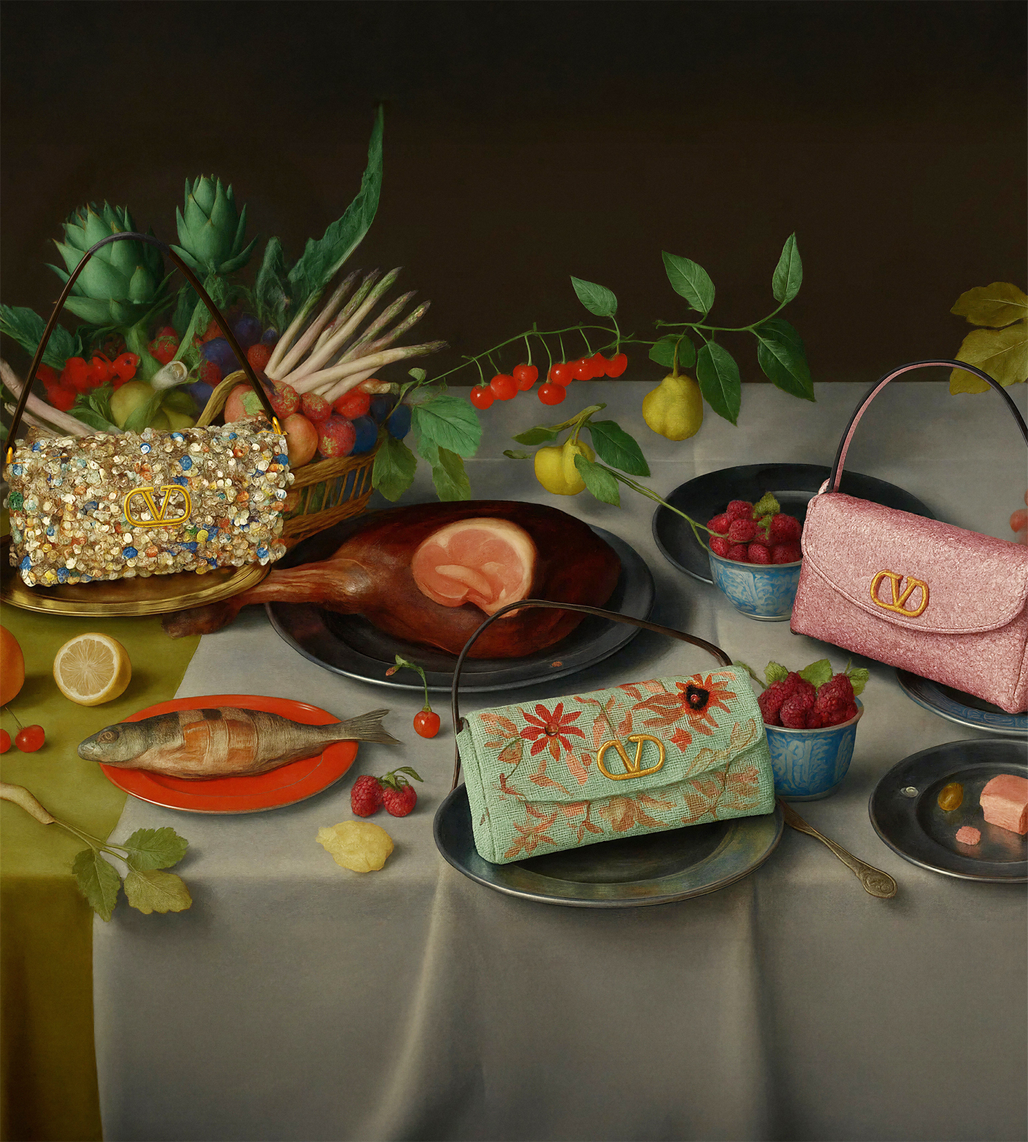 9 位国际艺术家以实验性的视觉叙事诠释 Valentino Garavani DeVain包款。Valentino 在这个企划中, DeVain 包款成为 9 组视觉作品的焦点,开启对当代创意与美学的探索。 透过数位媒介的再创作, 包款呈现全新的艺术表达,由不同领域的艺术家共同打造,营造出多层次且富有现代感的视觉世界。首批作品展出五位艺术家的创作: Thomas Albdorf、Enter The Void、Paul Octavious、Albert Planella 与 Tina Tona,其余作品将于12月初陆续发布,最终汇聚成完整的数位星图。