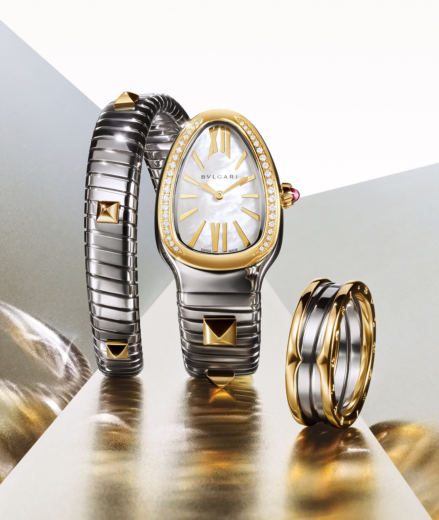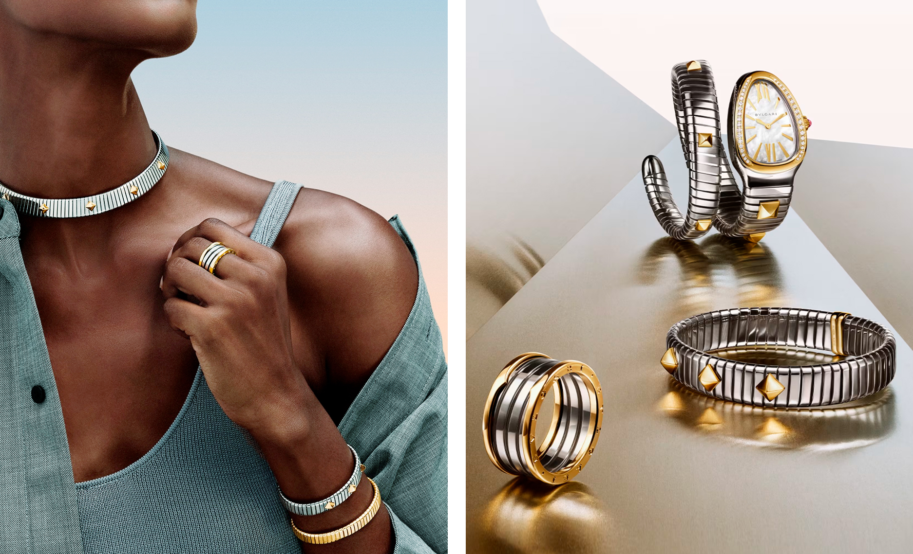 BVLGARI 以标志性两大经典 B.zero1 与 Tubogas,呈献全新 「 Gold & Steel 」系列, 将复古庞克魅力注入摩登叛逆的时尚造型 。