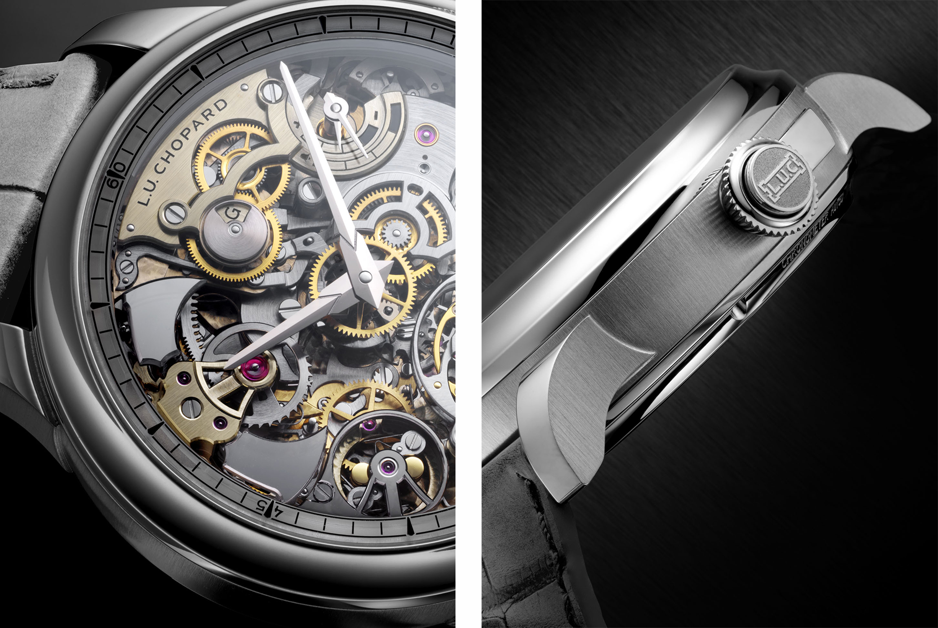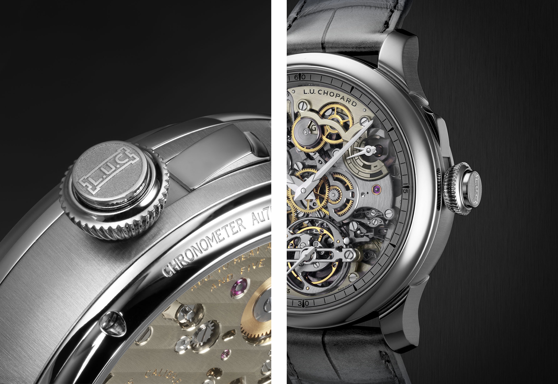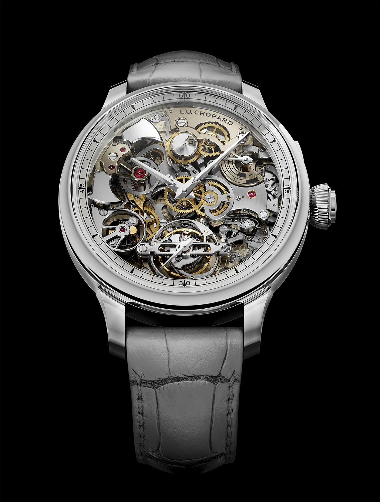除了技术层面的突破, L.U.C Grand Strike 亦体现 Chopard 糅合传统与创新的品牌理念。錶壳线条内敛克制,配合开放式錶面结构,营造出既现代又突显机械制錶工艺的美学氛围。而腕錶配备可替换的手工缝制鳄鱼皮錶带。