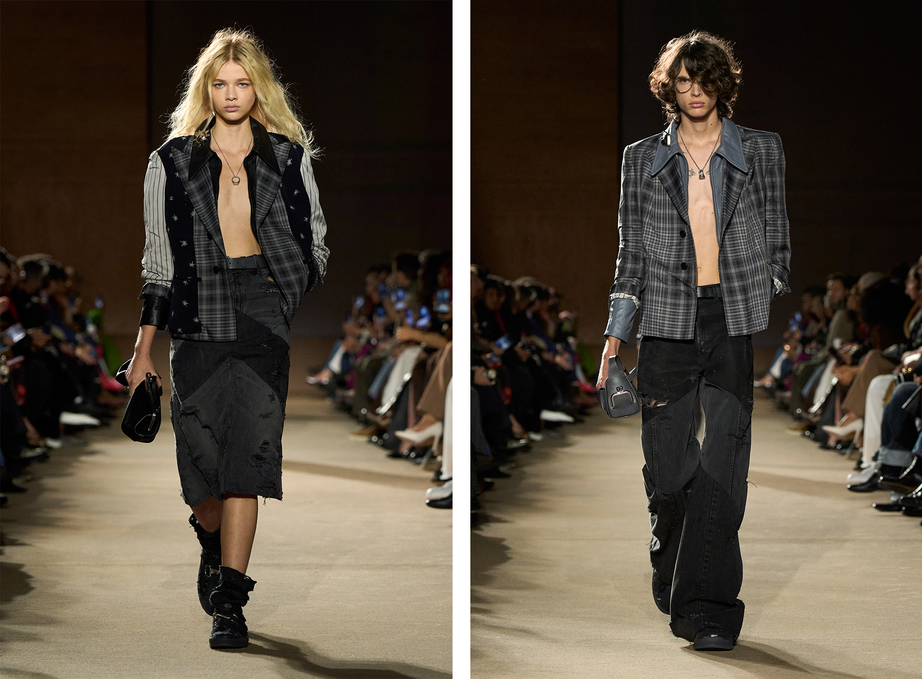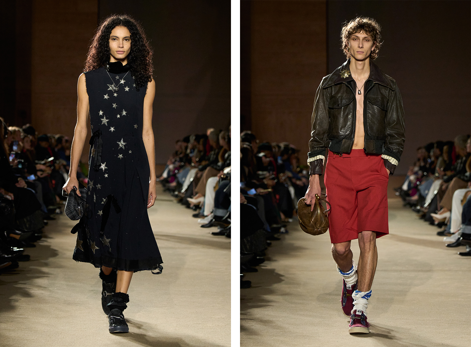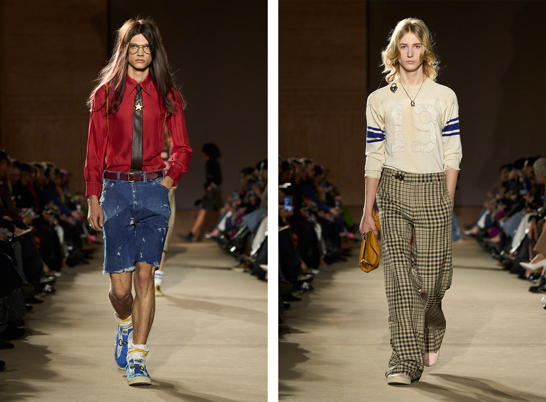 这系列勾勒出经典美式风格的多重面向,包含剪裁俐落的运动风单品与精致晚礼服,也包括仿旧磨损感处理的休闲针织上衣与再制丹宁单品,将各种可能性串联在一起。色调从暗黑棕褐色调,转化到明亮绚丽的高彩度,有如伴随新世代走入未来的冒险旅程。