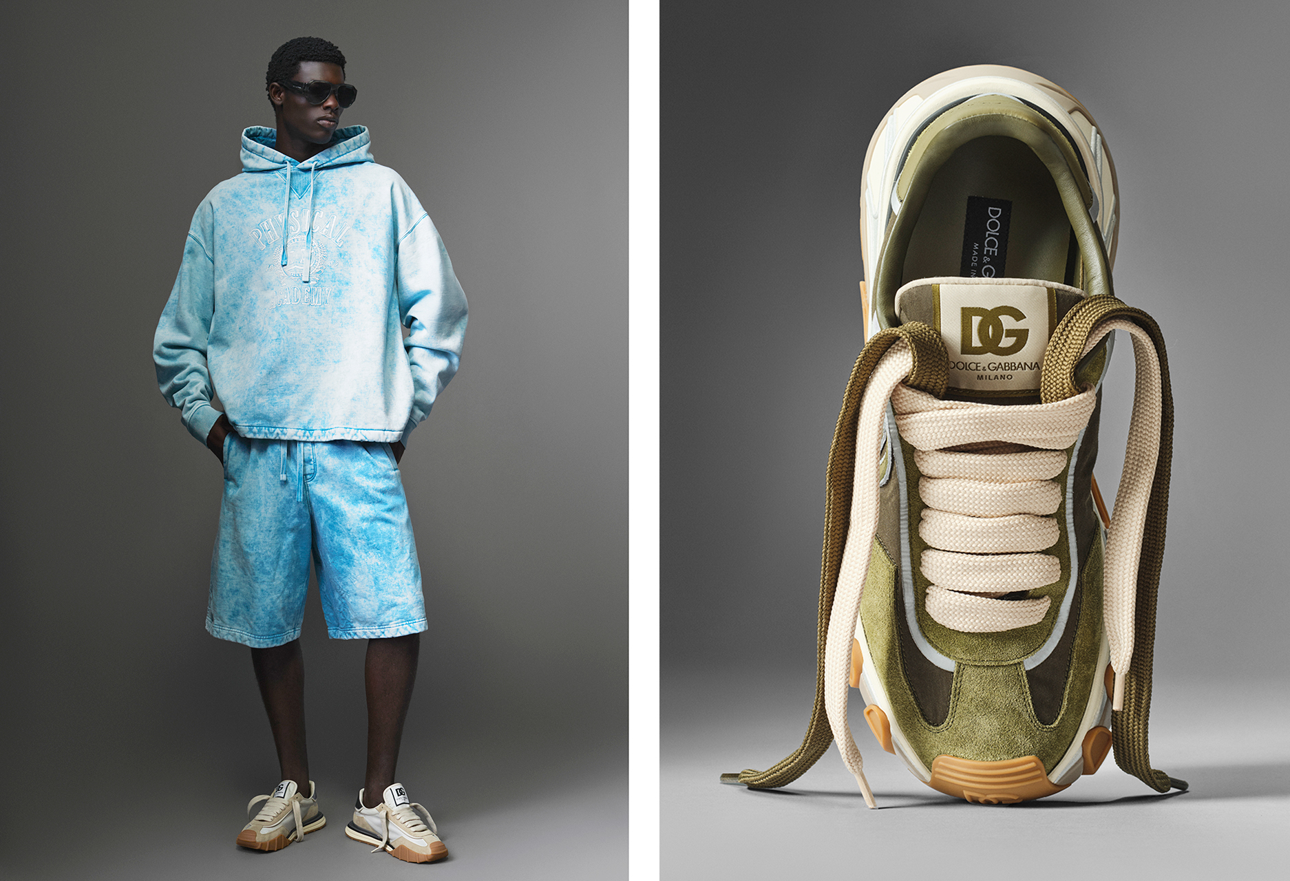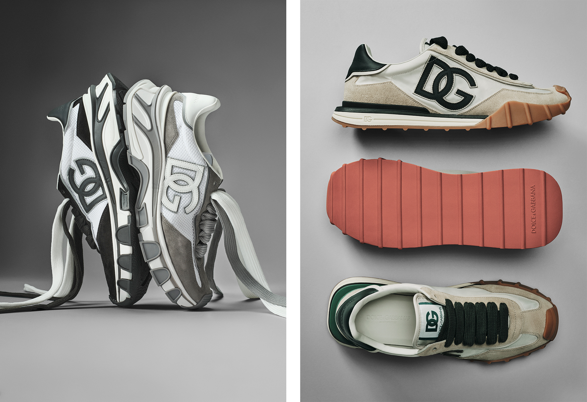 而鞋款方面,两款运动鞋引入全新鞋底设计,呈现既纤细又大胆的轮廓,由巧妙混搭的材质打造。所有元素结合构筑出一种和谐一致的时尚美学,同时表达 Dolce & Gabbana DNA 与品牌风格的多重面向。