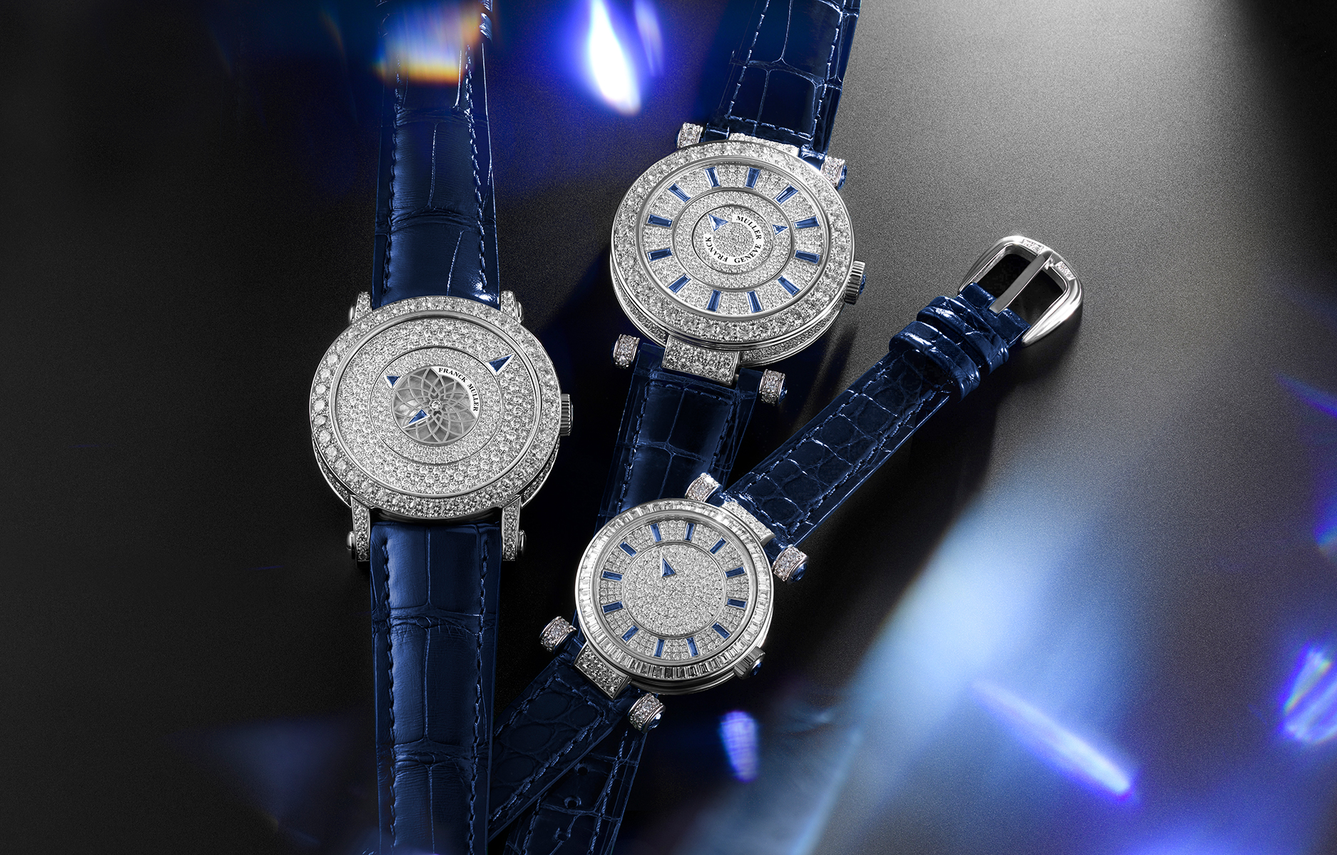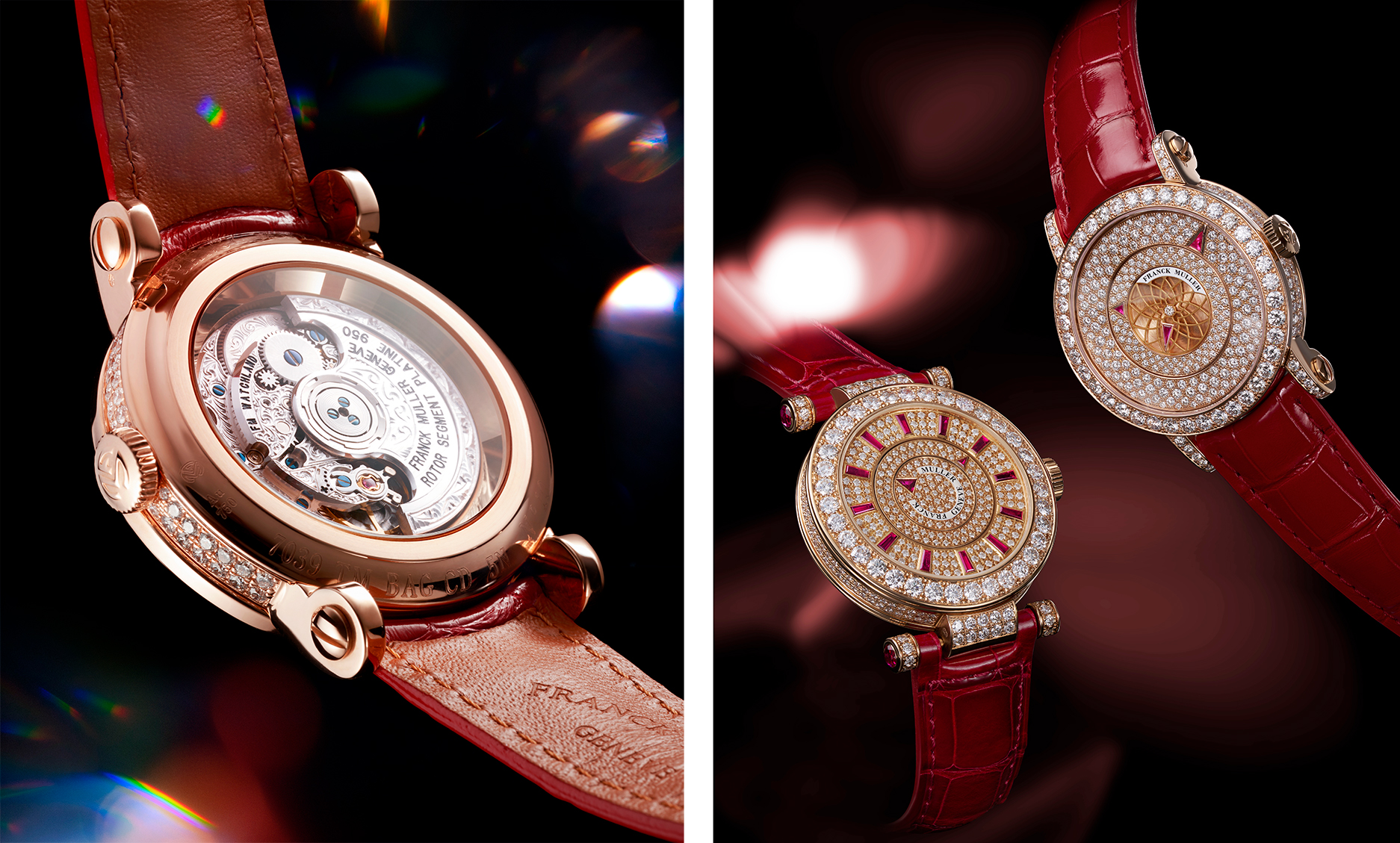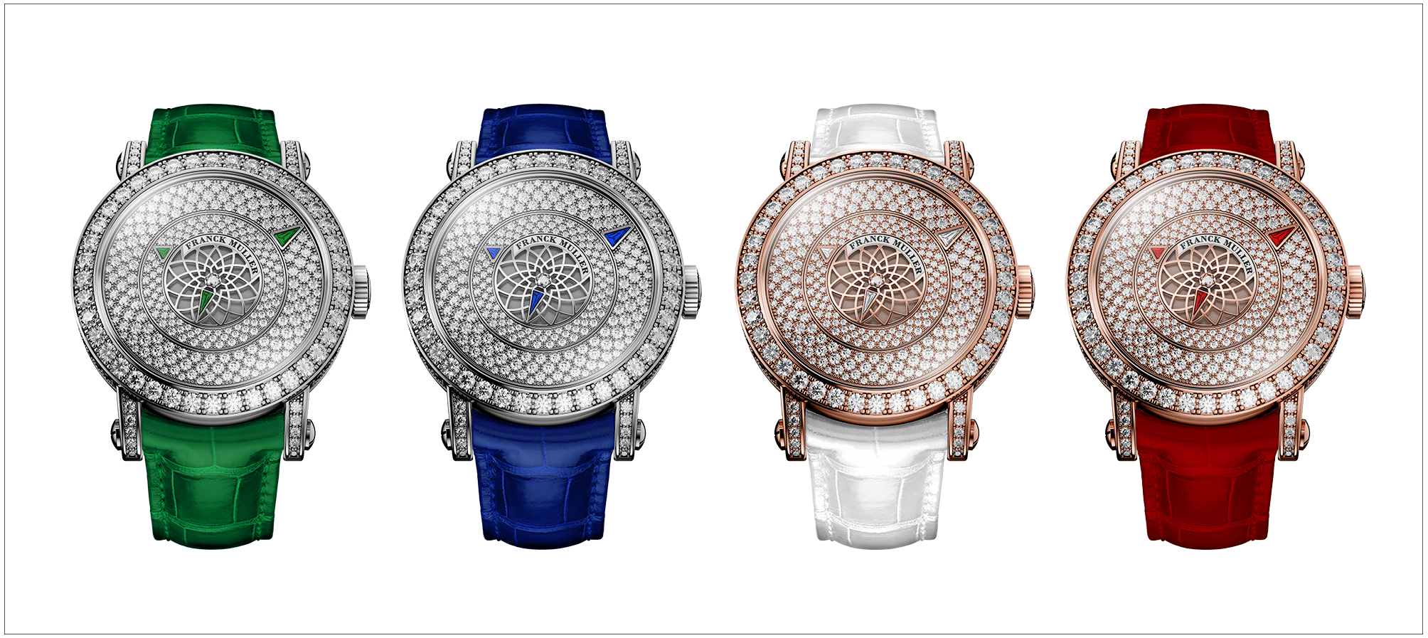 FRANCK MULLER 全新 Round Triple Mystery 钻表从单圈到三圈满盘密镶美钻, 并以旋转盘取代传统指针,宛如天体运行般的优雅律动。