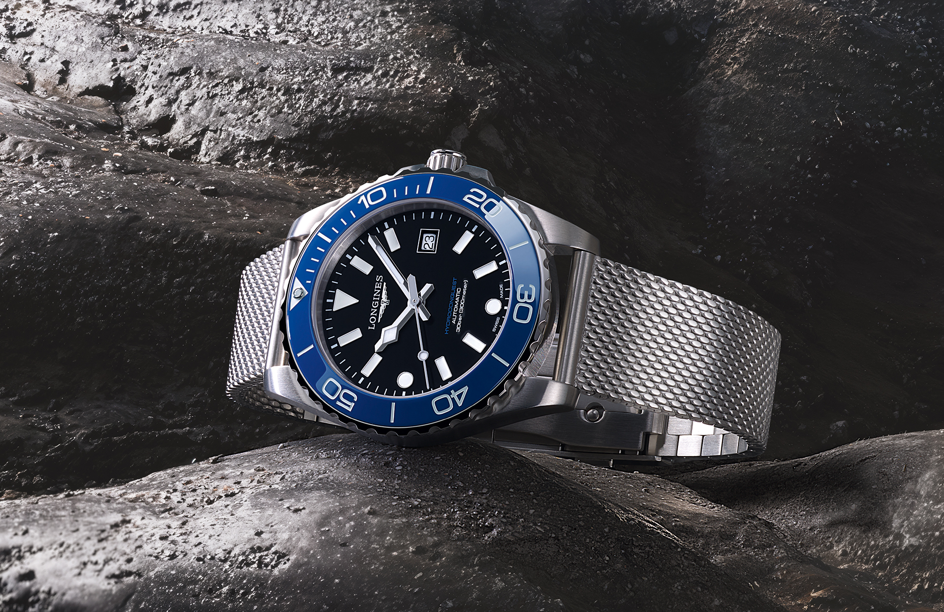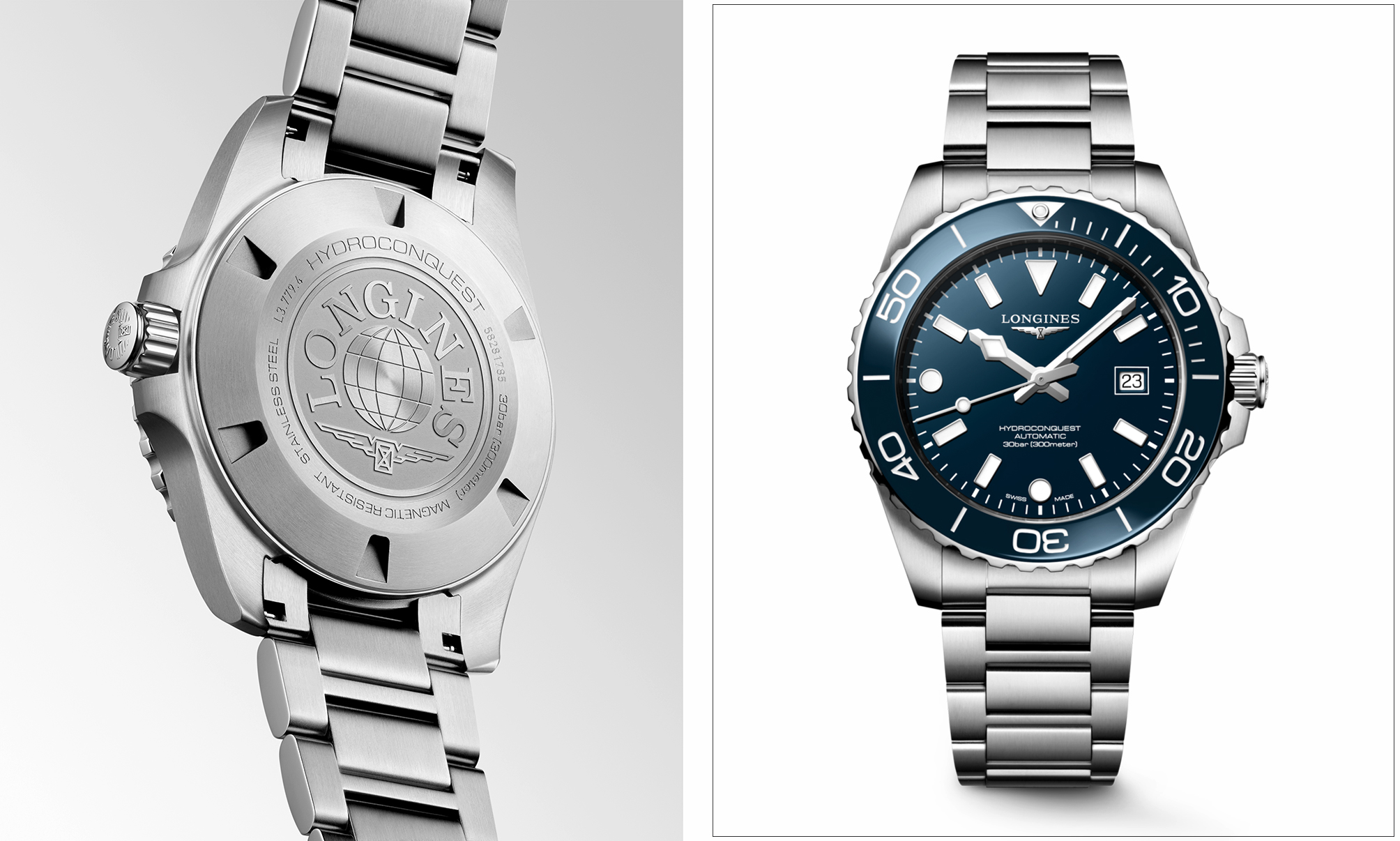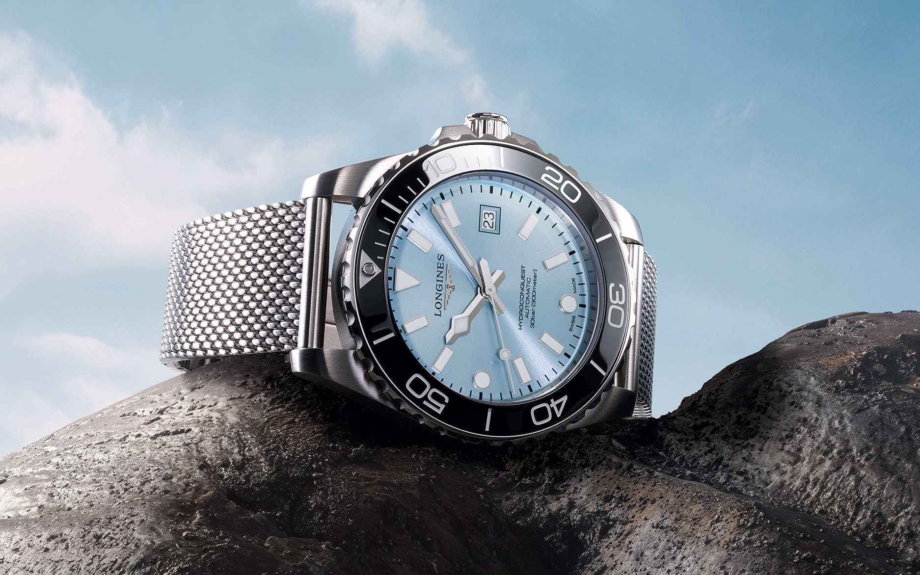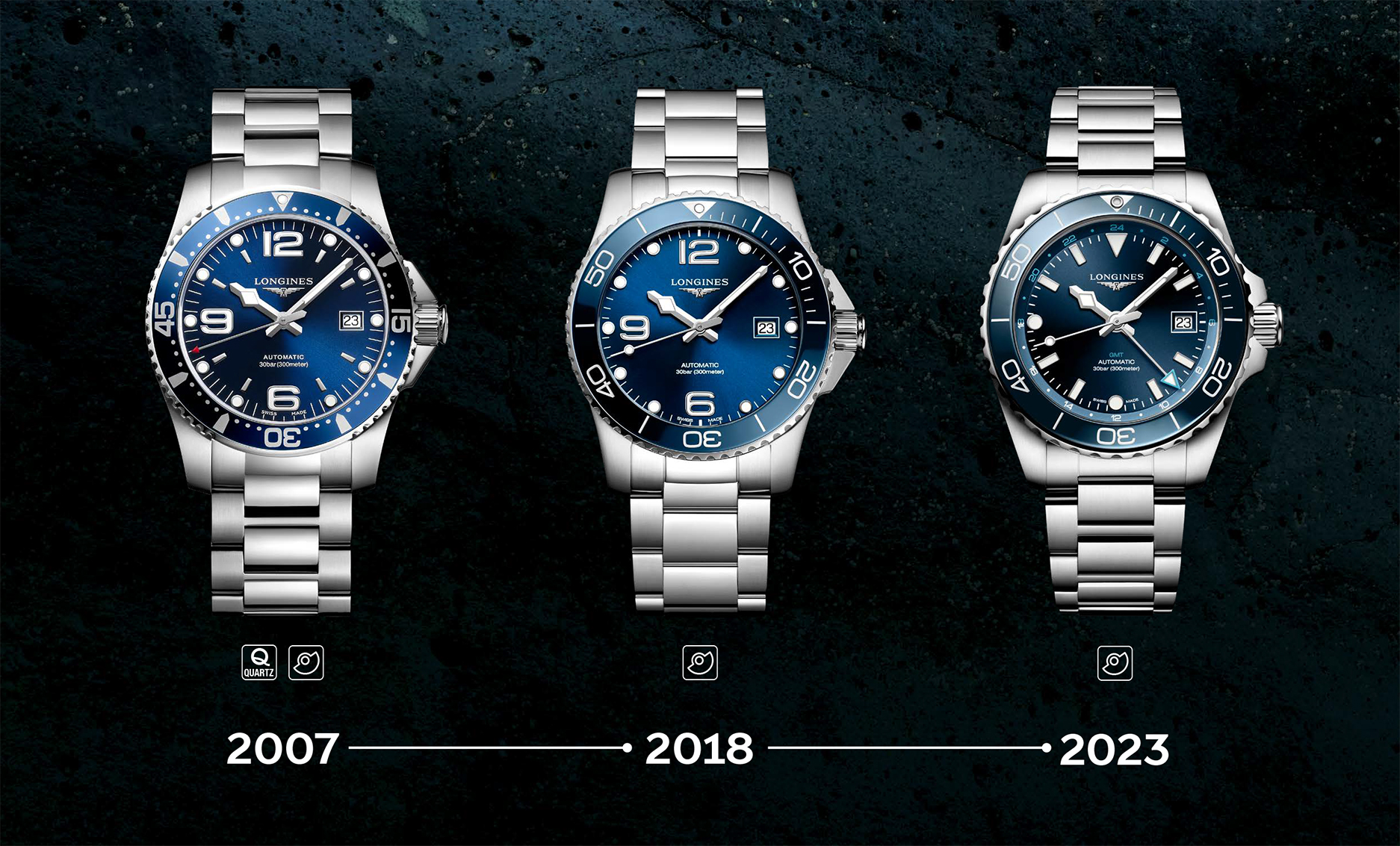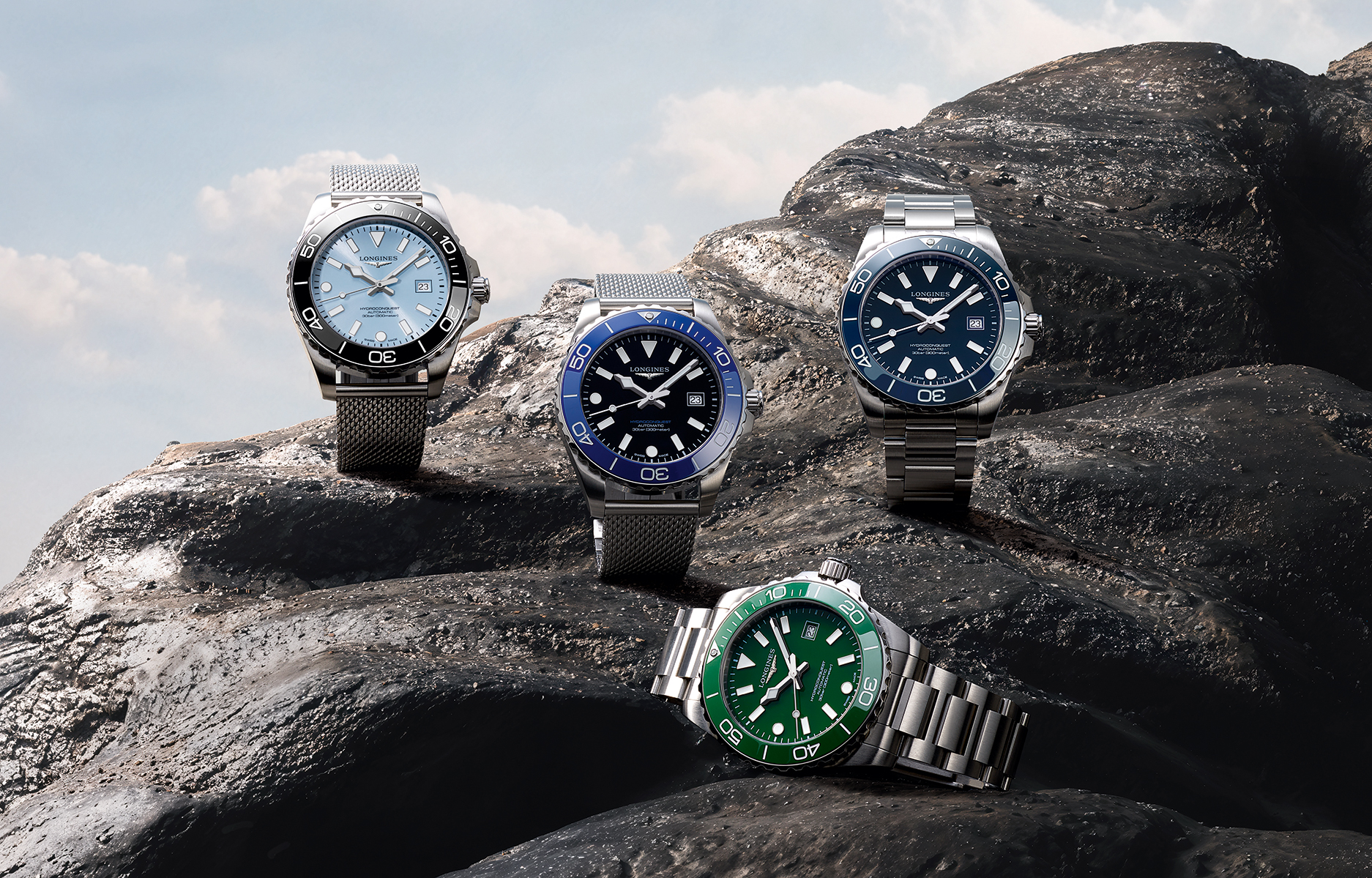 新一代 HydroConquest 深海征服者系列在视觉层次上展现了极致的追求, 以 39 毫米与 42 毫米精钢表壳耀目登场,这两种比例经过精密构思,在展现潜水錶应有的存在感之余,更大幅提升了配戴的贴合度。再搭配四款全新表盘设计与五种醒目的陶瓷表圈颜色 ; 除了经典的浪琴蓝、永夜黑与苍翠绿抛光面盘外,本次更推出极具未来感的「 磨砂霜雾蓝 」太阳放射饰纹面盘,其细腻的纹理在光影照射下能产生迷人的变幻效果。