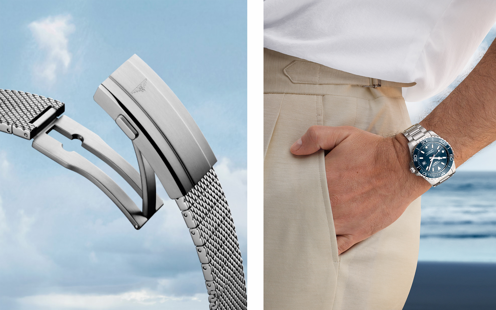 当然,经典的 H 形不锈钢錶链也同步进化,搭载双重折叠式安全錶扣与具备四段微调范围的装置,让每一位收藏家都能找到专属的完美贴合感。 针对追求独特性的藏家,Longines 特别推出了专卖店与电商平台独家的「 磨砂霜雾蓝 」面盘款式,这两款独家作品搭配浪琴蓝陶瓷圈与 H 型不锈钢錶链,以当代视角诠释海洋的本质,完美捕捉了海洋在不同时刻的光影层次。
