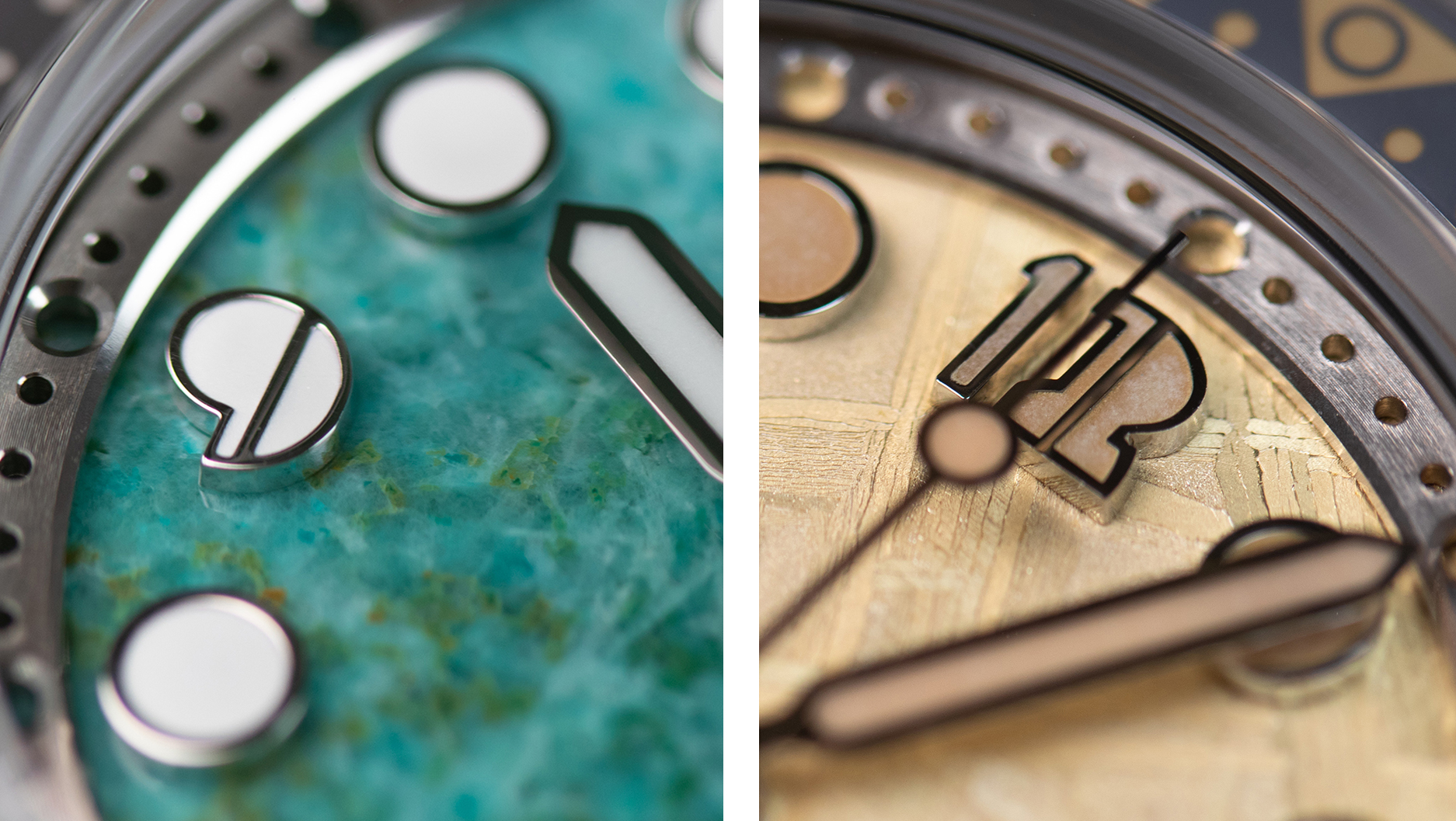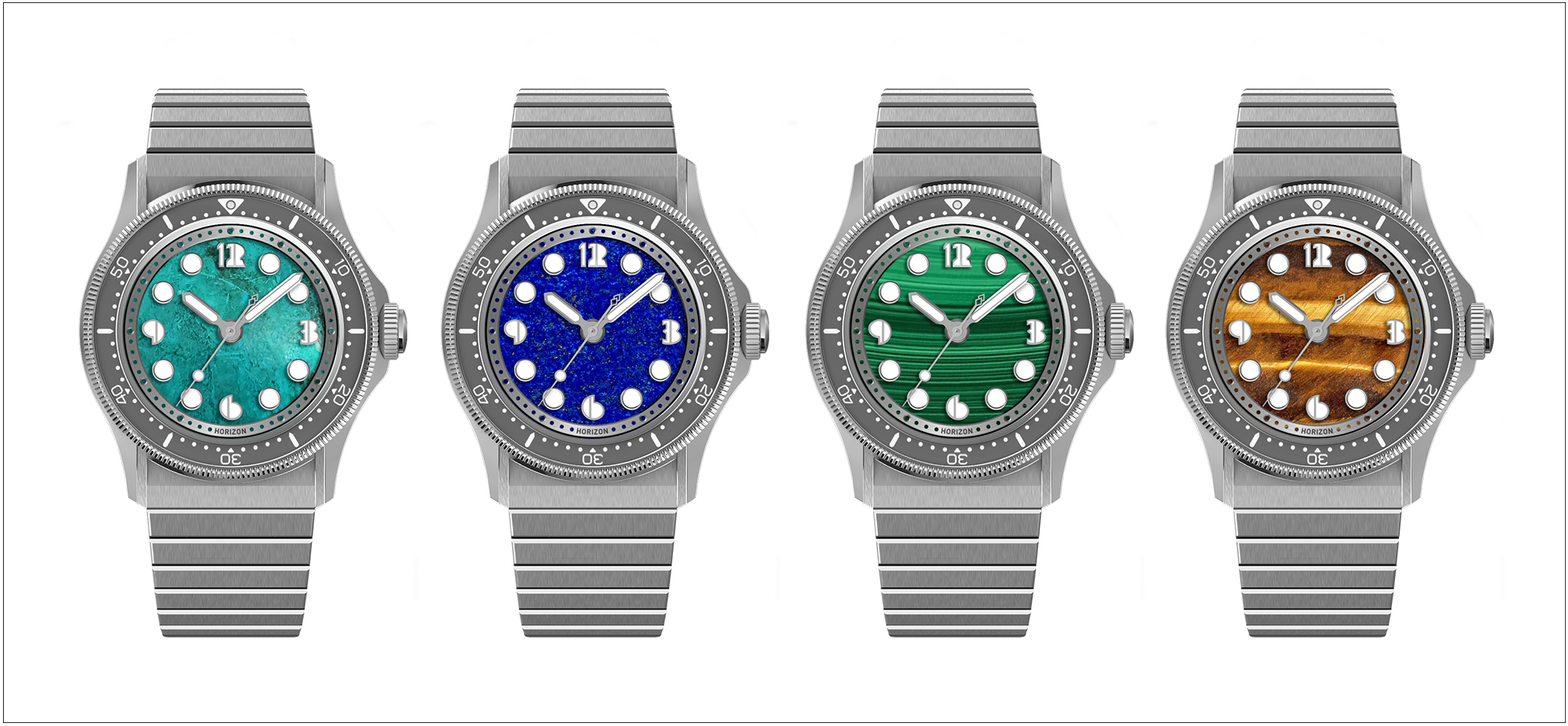Nemolithic 之名,巧妙融合了家族血脉中的 “ Nemo ” 与代表岩石工艺的 “ Lithic ”,仿佛在腕间筑起一座连接远古地质文明与现代精湛时计的桥梁, 让每一枚腕表都幻化为承载地球记忆的艺术孤品。为了完美呈现这大自然的鬼斧神工,品牌精心萃取了五种跨越千百万年光阴洗礼的天然矿石作为表盘:拥有熠熠金光与灵动深邃感的虎眼石 ( Tiger Eye )、宛如深邃星空且象征皇室尊荣的青金石 (Lapis Lazuli ) 、层叠翠色间蕴含新生力量的孔雀石 ( Malachite )、交织着绿松石色调与大地气息的硅孔雀石 ( Chrysocolla ),以及那一抹来自浩瀚宇宙、坠入凡间的金陨石残影 ( Gold Meteorite )。