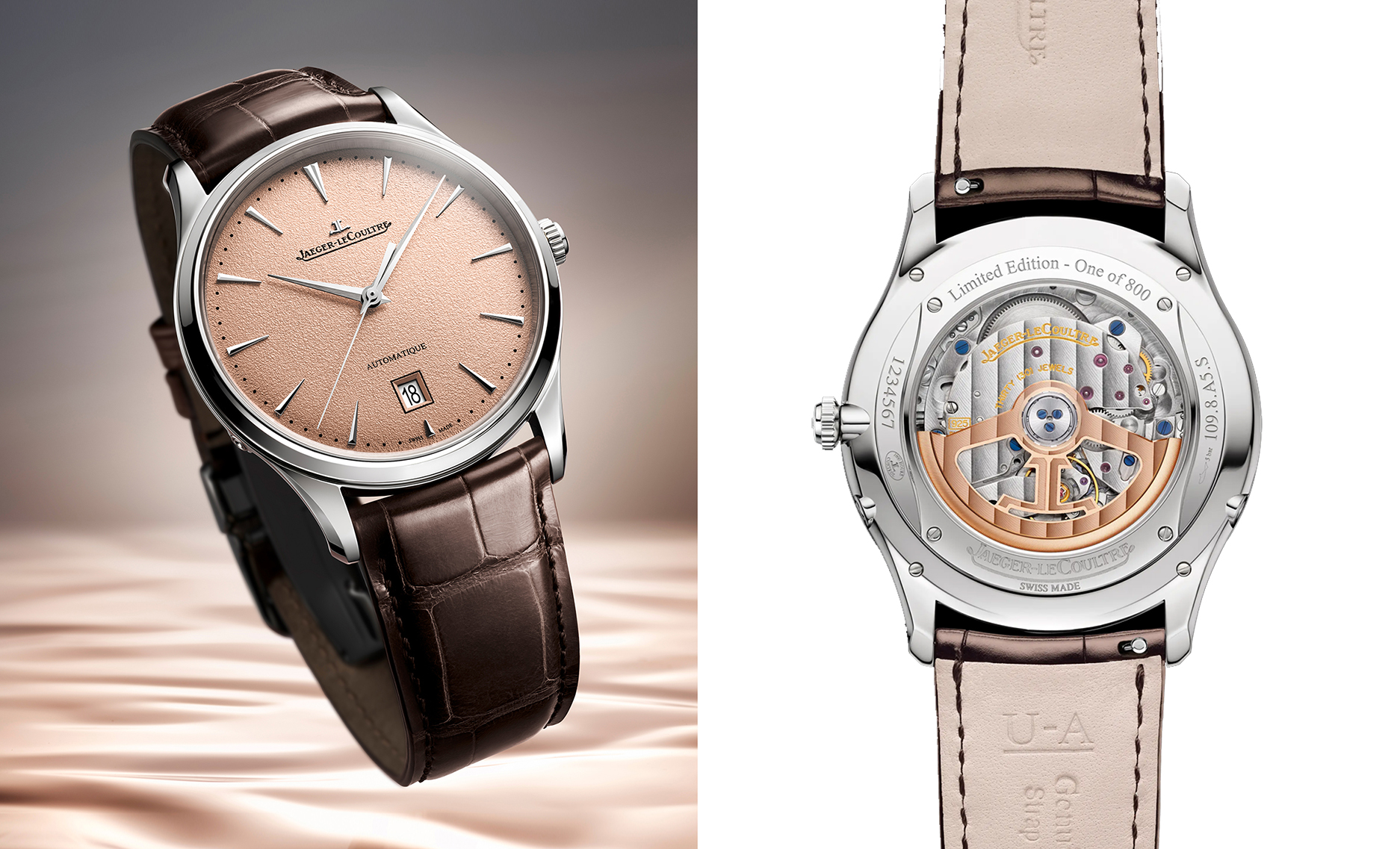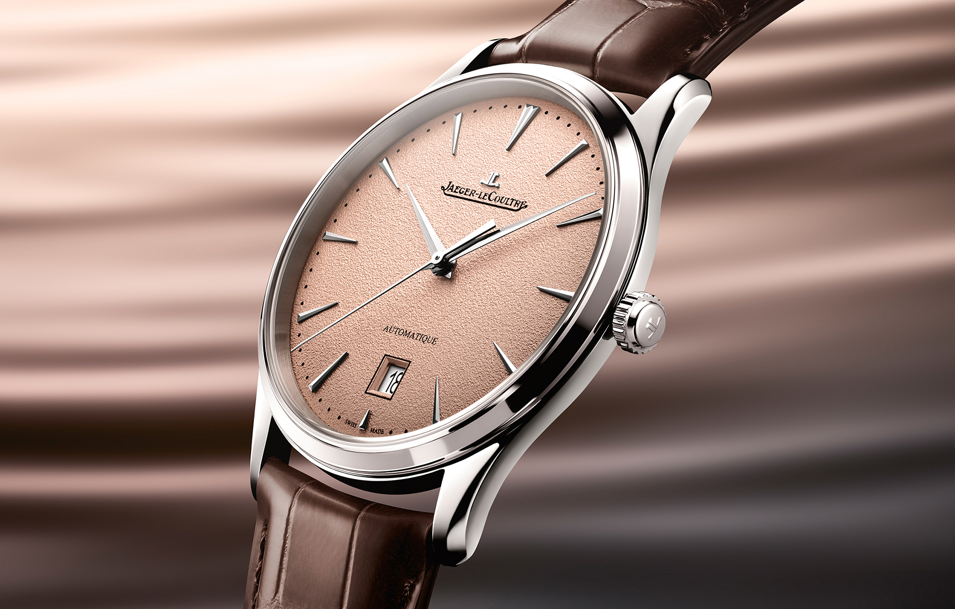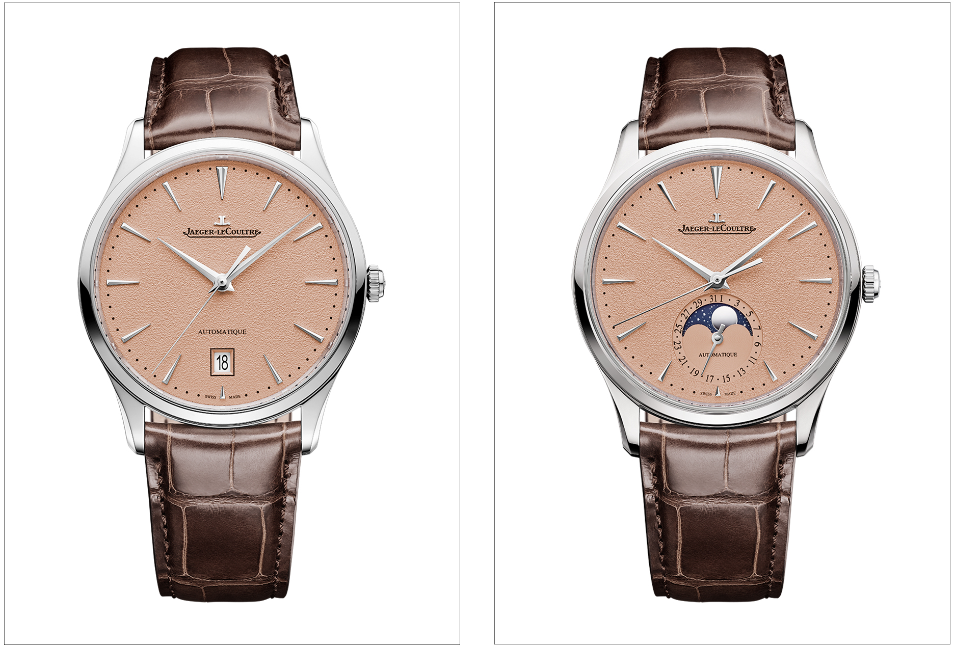 Jaeger-LeCoultre 推出两款铜色粒纹錶盘 Master Ultra Thin 超薄腕錶, 暖调铜色粒纹面盘在光线下, 展现从柔粉到深铜的层次,并注入现代活力。