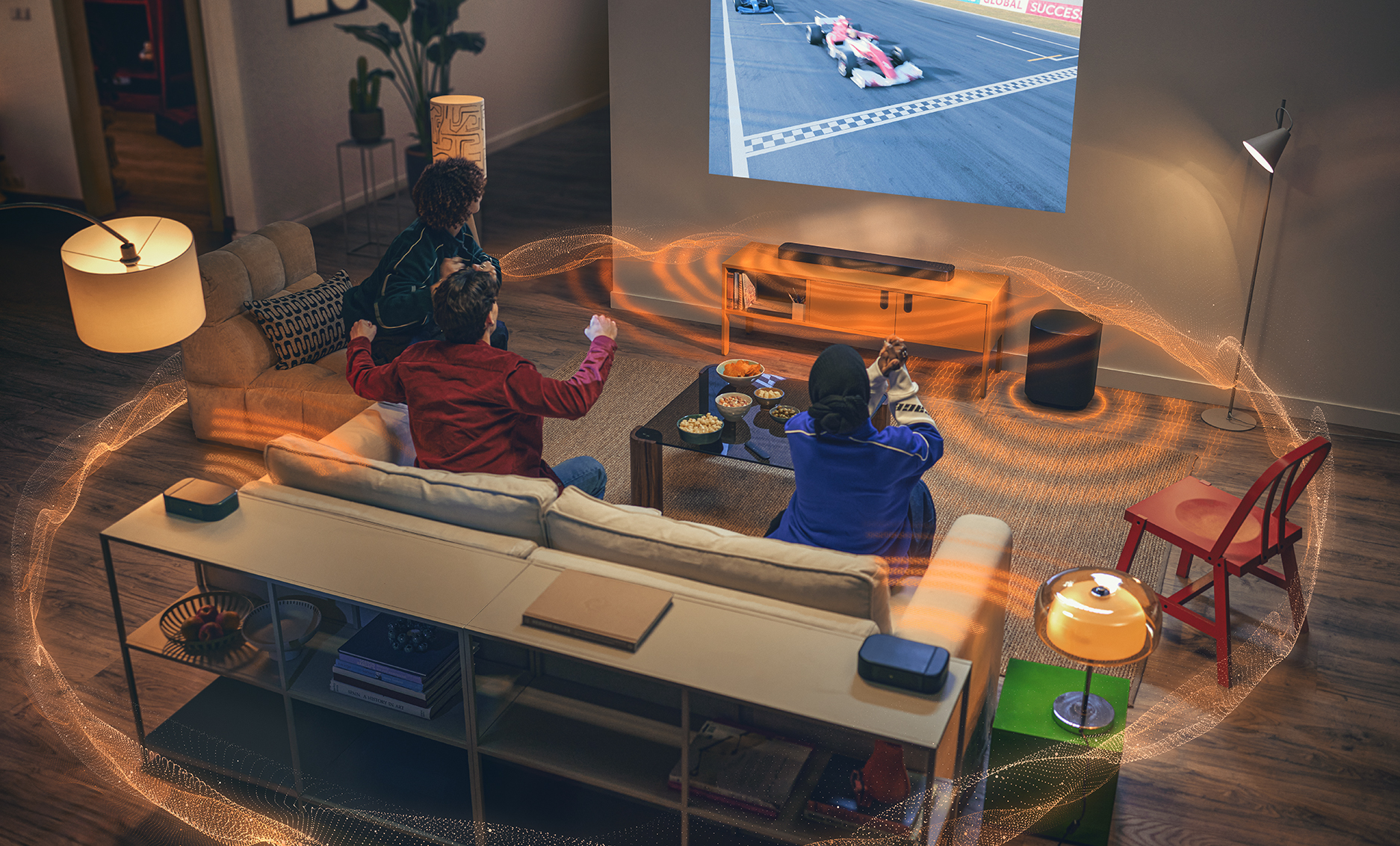 整个 JBL Bar 系列以 HARMAN 独家的 MultiBeam™ 3.0 技术,仅凭单一 Soundbar 即可创造出环绕音场体验。 再结合 Dolby Atmos®、DTS:X* 与可拆式后环绕喇叭,影迷们将能在家中享受如同坐在电影院第一排的震撼体验。 沉浸式的音效不仅仅是环绕,更是「 感受 」每一个细节。