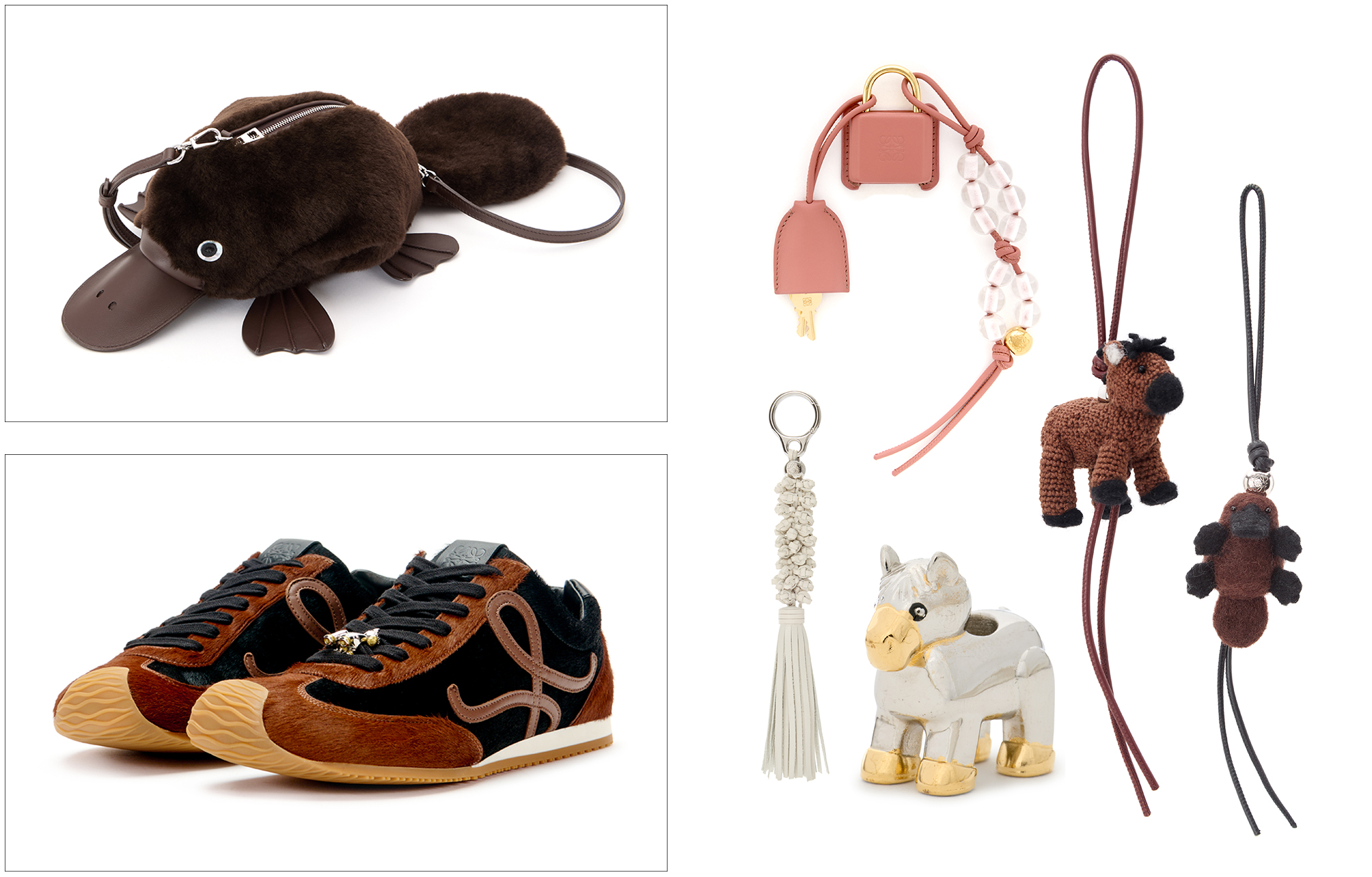围绕马的精神意象,系列带来多款标志性设计的特别版本,新春系列呈现多款 LOEWE 标志性手袋,包括饰以手工打结流苏与穗饰的 Puzzle 与 Amazona 31 cropped 手袋,细节灵感取自马鬃;同时推出马形挂饰与骰子配件,为整体增添玩味气息。 成衣方面,王一博在短片中所穿的皮革衬衫式外套亦将于 Loewe 指定门店限量发售。而该系列即日起也于 Loewe 专店及 loewe.com 同步发售。