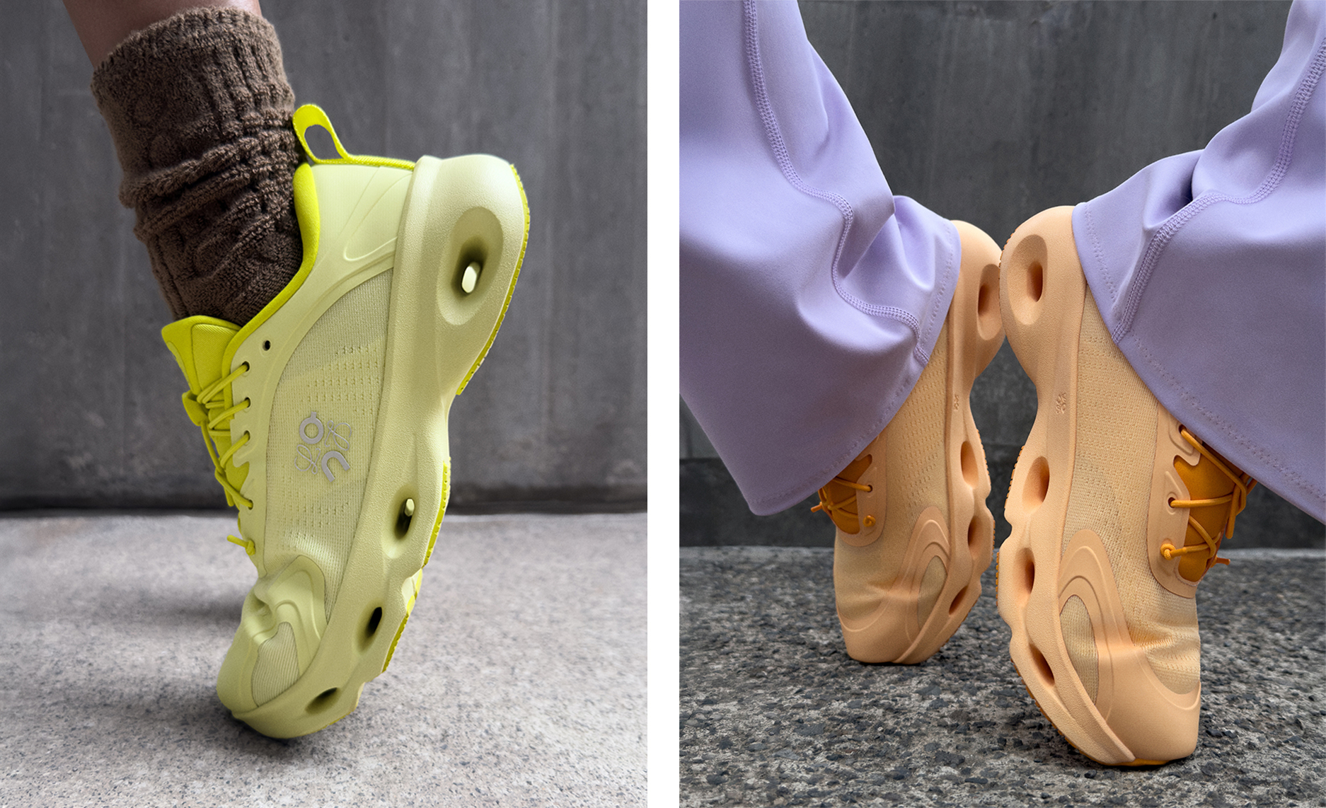 早前双方的联名通常以 On 现有的人气鞋型为核心改造,不过新一季联名崭新的鞋款「 Cloudsolo 」诞生了,从名称可以得知,其依然采用了 On 的 Cloud 云朵缓震机能,不过鞋跟位置缩减到只有一个洞( CloudTec® 缓震结构 ),中底以 Helion™ 超级泡沫及专利 Speedboard 构成,鞋面为 On 研制的功能型半透明织网, 配上 Loewe Anogram 标志石卵形鞋带扣,以及可调节弹性鞋带,鞋侧则点缀双方联名标志,总共带来绿松石色、橙色、青柠绿色及多个中性色调可选择。