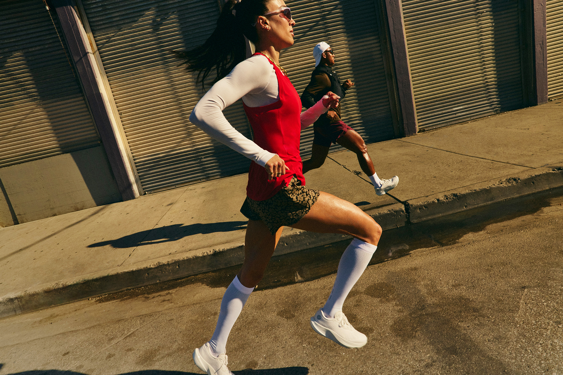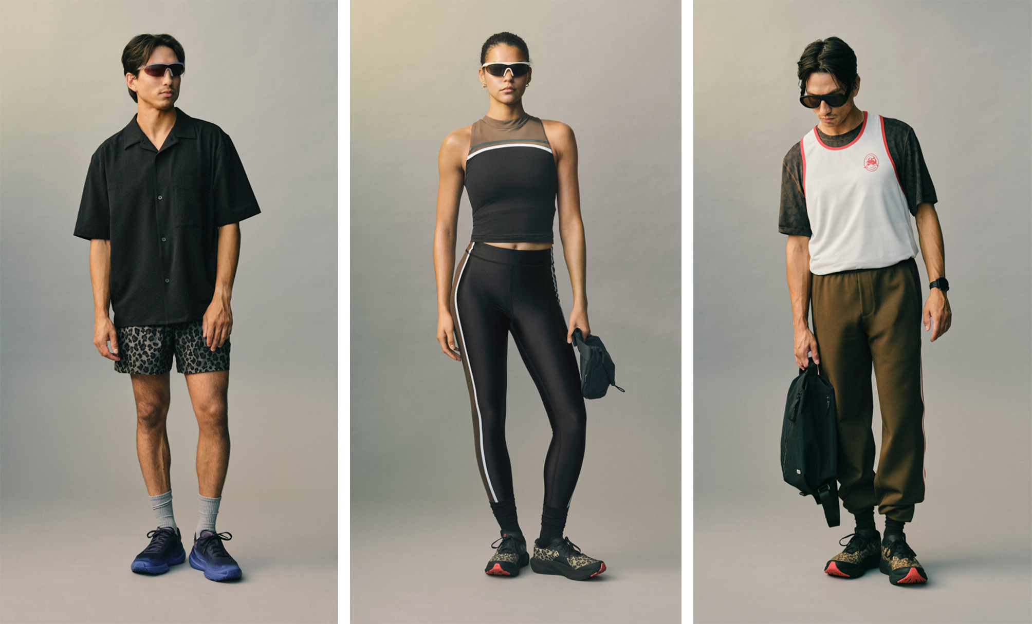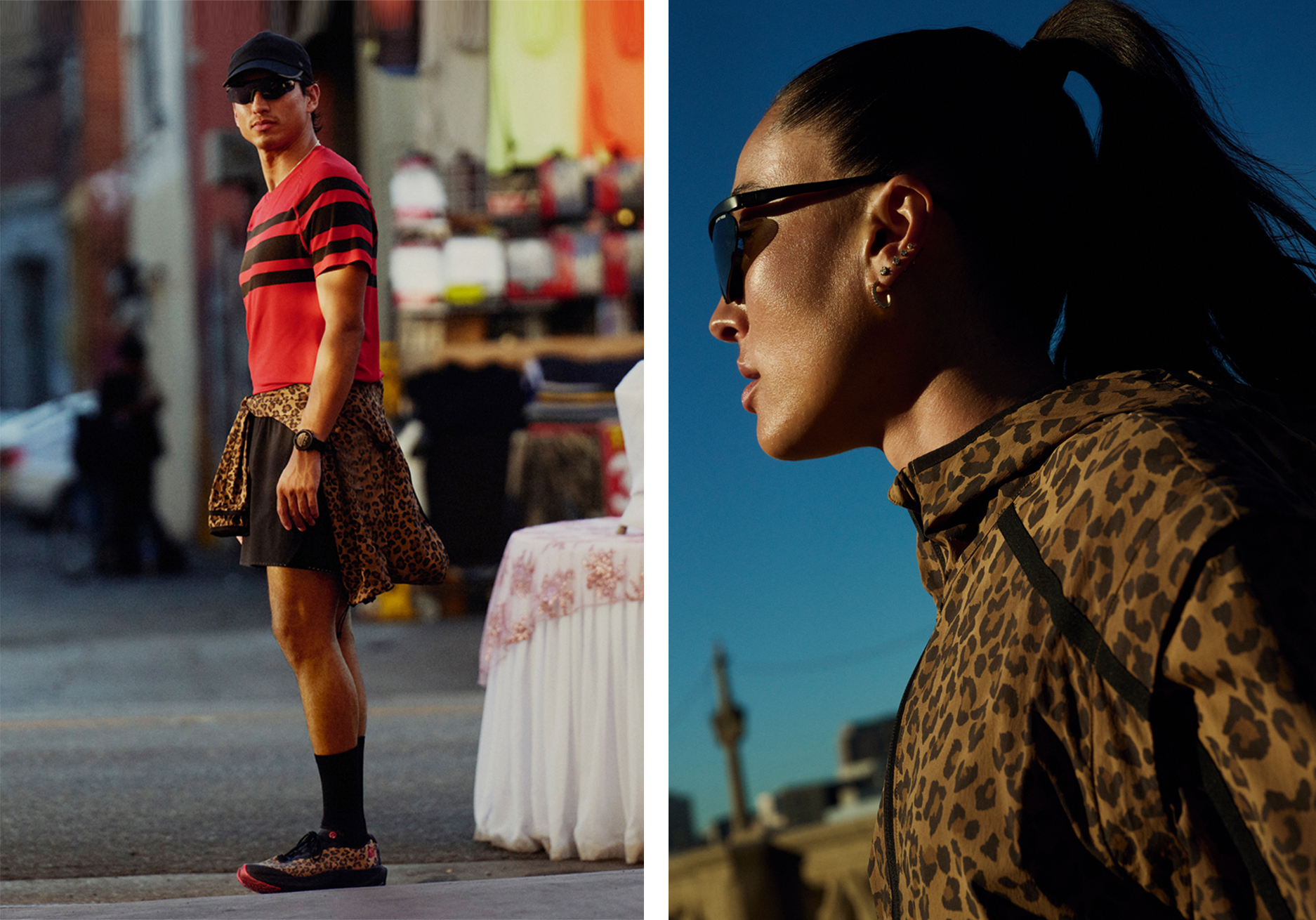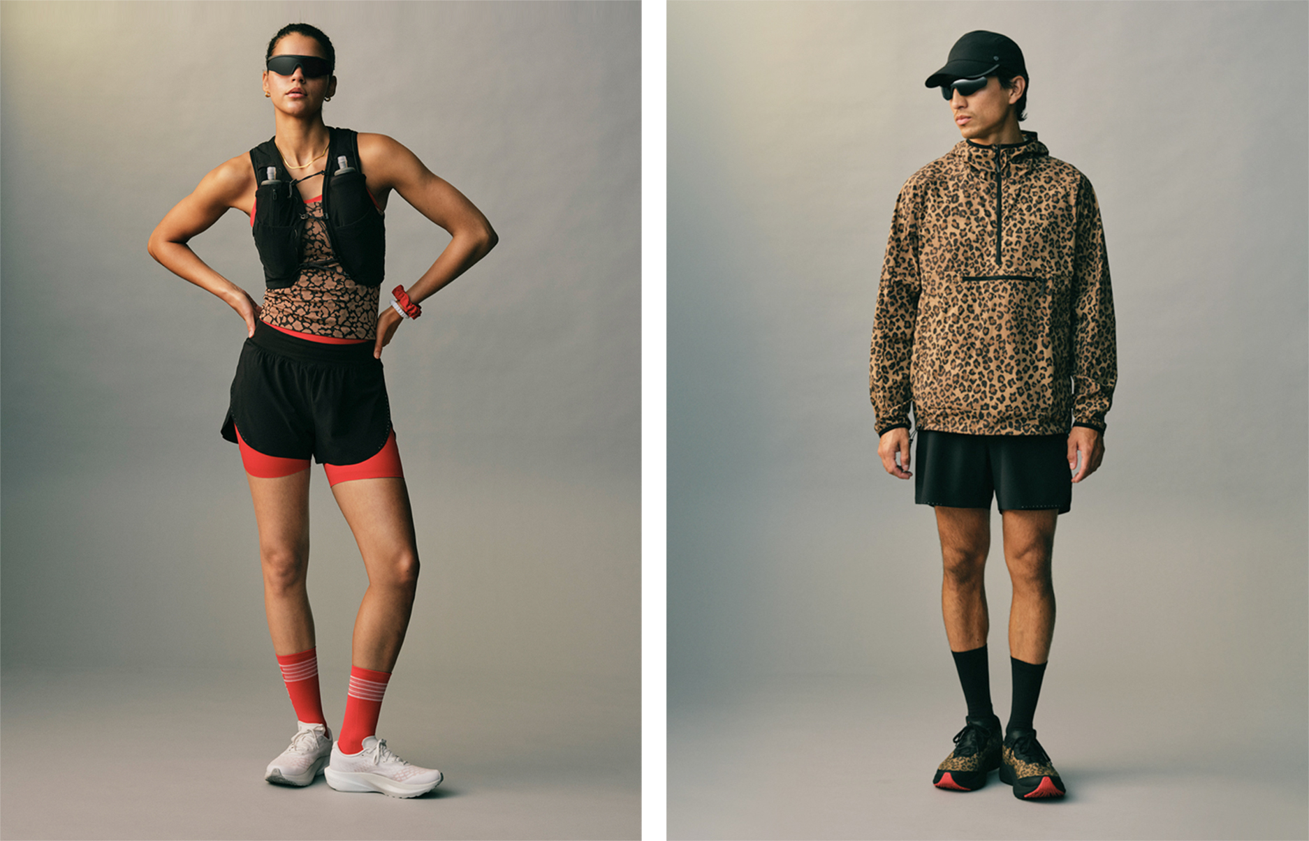 新款豹纹图案的 Transformable 运动两穿夹克则采用 Glyde 面料,背部通风设计搭配可拆卸衣袖,可在奔跑中转换为马甲,伴她自如训练。 SPLIT SHIFT™ 跑鞋也首次融入豹纹印花,透气网面搭配 ShiftFoam™ 中底缓震设计,提供顺畅支撑,让每⼀步稳定和澎湃。