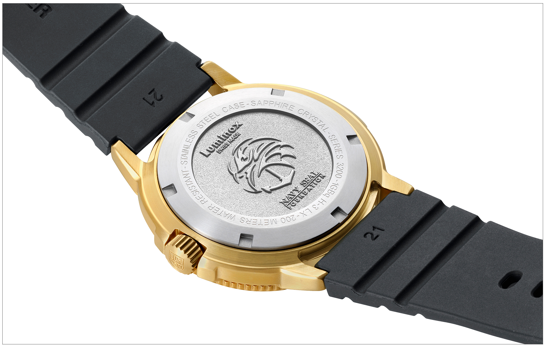 Navy SEALs 海豹突击队基金会自 2000 年以来,Luminox 一直与美国海军海豹突击队精英成员长期合作,为纪念 Navy SEAL Foundation 创立 25 周年, 推出全新 Luminox Navy SEAL Foundation 3220 黄金版腕表 ( Luminox Navy 3200 Series – LM3221.NSF ) , 象征对该基金会四大支柱 ─ 兄弟情谊、勇气、牺牲与支持的深深敬意与感谢。