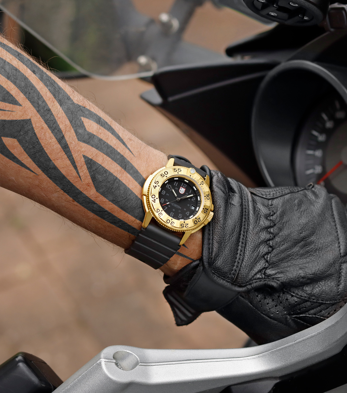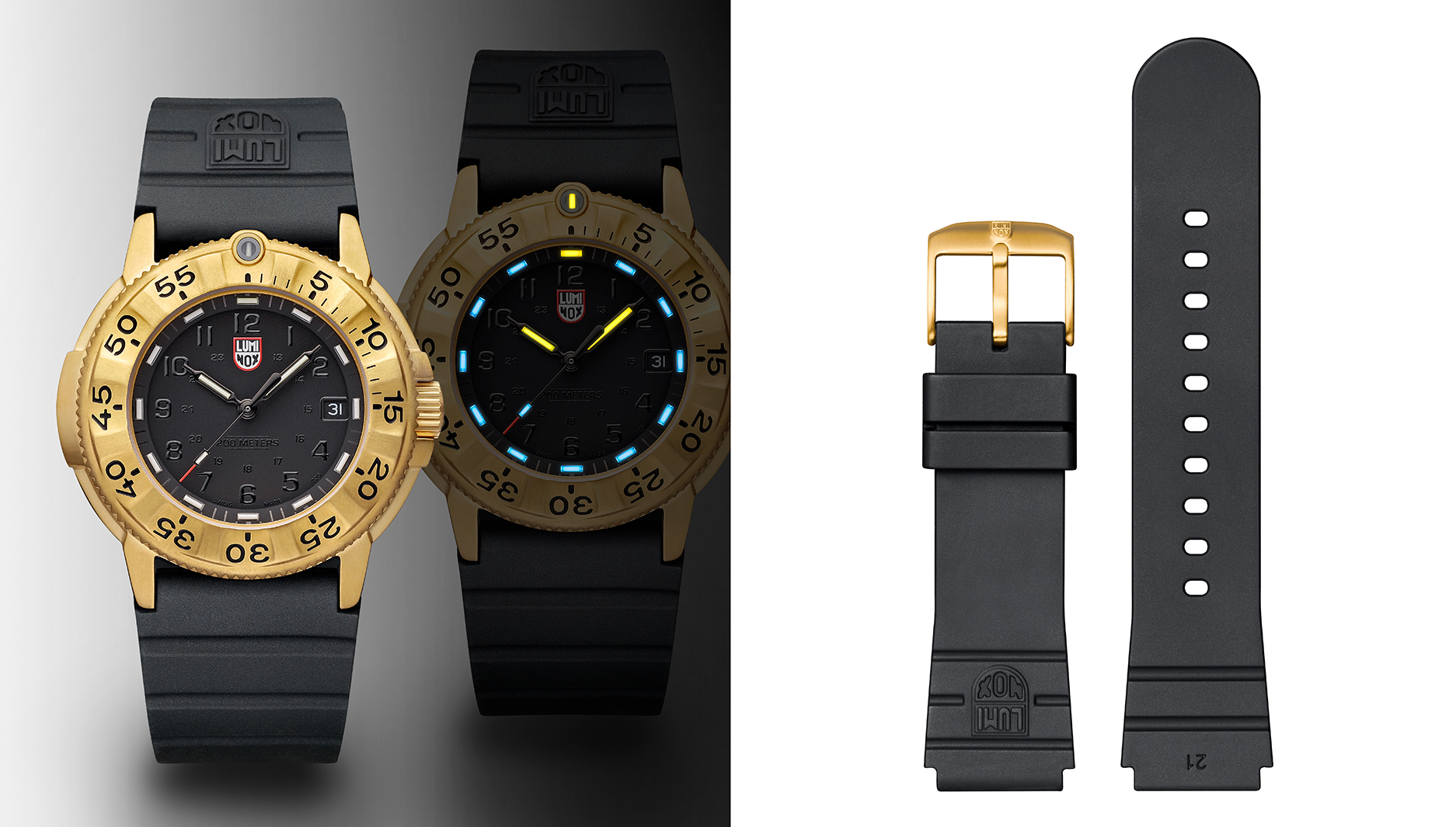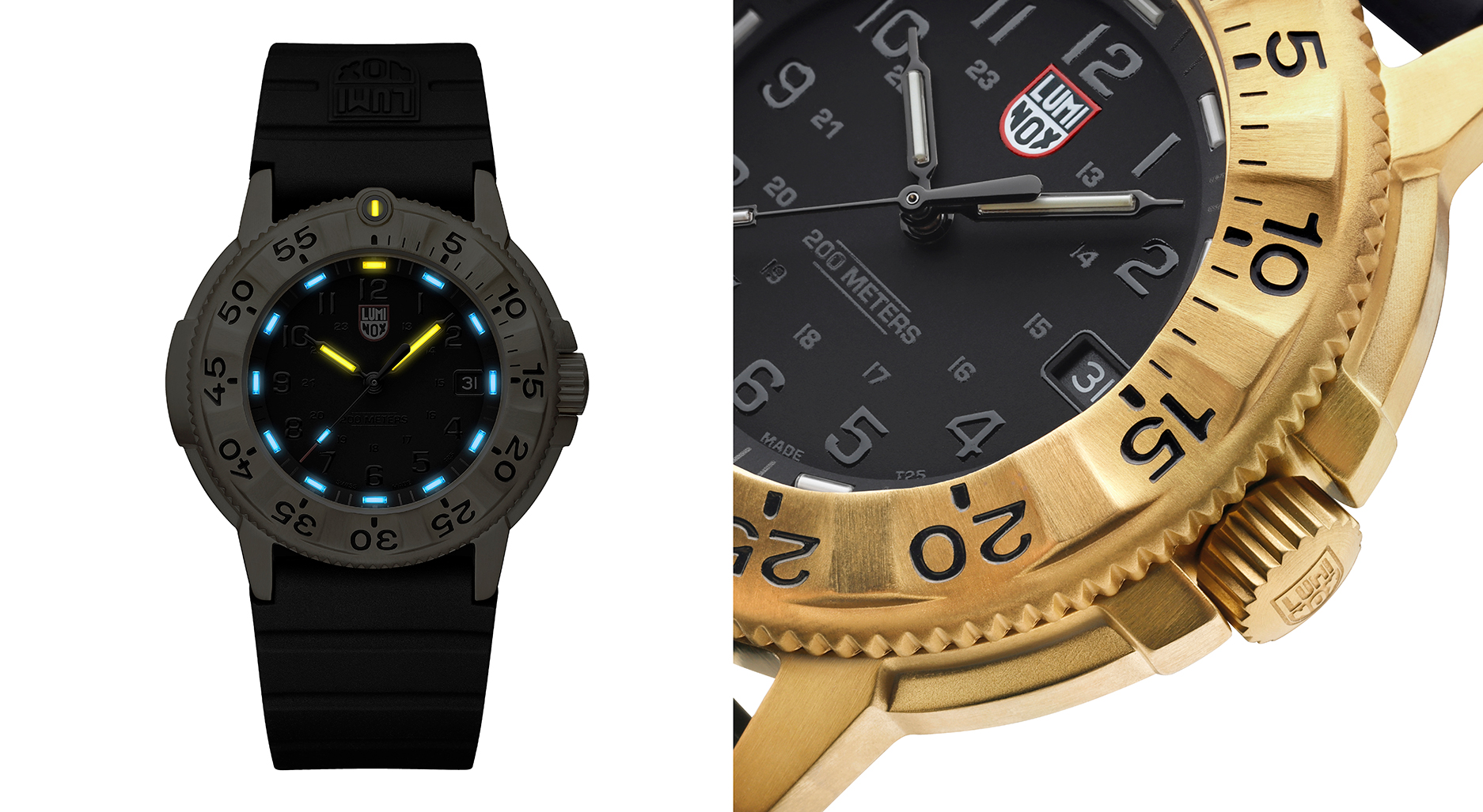 在功能上, Luminox 延续「 Always Visible 」的品牌精神,搭载瑞士专利微型自发夜光系统,于錶盘、指针与錶圈位置配备高阶錶款仅见的 16 支黄金与冰蓝色氚气灯管,即使在黑暗中也清晰可辨,无需外部光源充电,持续稳定发光长达 25 年。 而哑光黑色表盘隐藏在防反光蓝宝石水晶镜面之下, 60 分钟刻度圈则融合了金色与醒目的黑色细节。