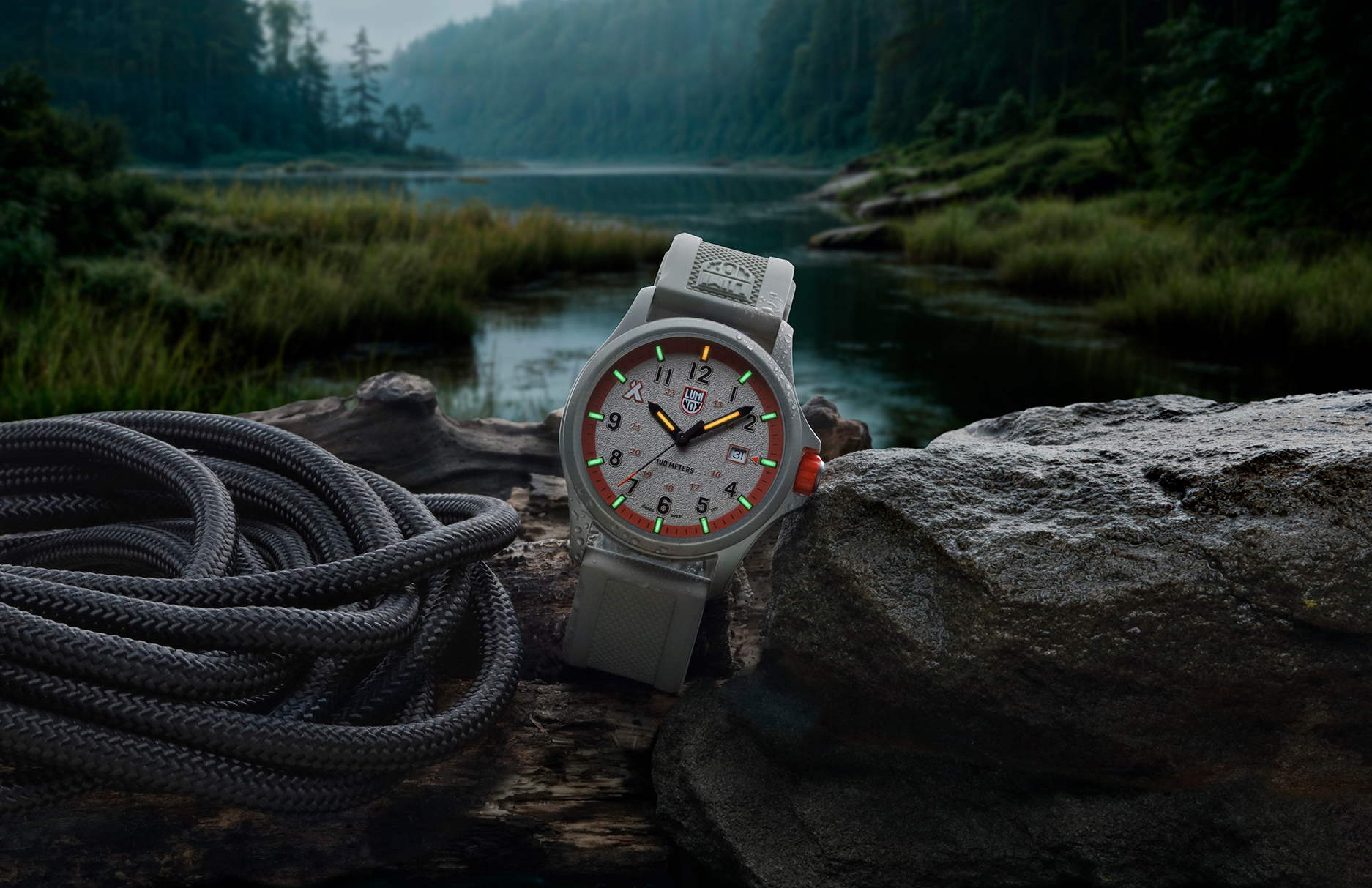 Luminox Bear Grylls Survival Land 3710 手表蕴含了 LLT( Luminox 光科技 )的核心技术,这项技术已成为该品牌的标志性特征。与只能发光数小时的传统涂层不同, LLT 采用由硼硅酸盐玻璃制成的微型管,管内填充气体,可自动发光 —— 无需充电,也无需外部能源。这种发光效果可持续长达 25 年,这意味着您的 Luminox 3710 使用二十年后依然像第一天那样明亮。