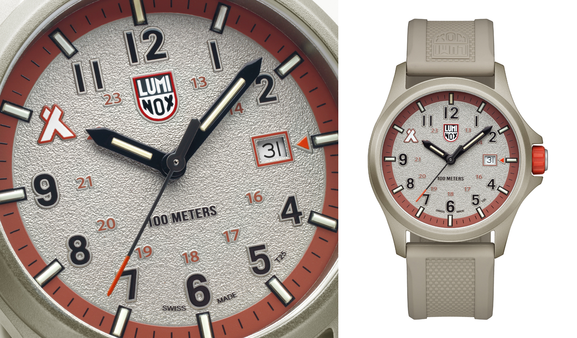 1992 年,当美国海军海豹突击队寻找一款适用于极端环境的官方腕表时,他们并没有选择瑞士其它腕表品牌,而是选择了 Luminox。 Luminox 的 3001 型腕表通过了军方测试,证明了它是一款实用工具,而非装饰品。 自此,Luminox 便以耐用性、功能性和清晰易读性为品牌特色 —— 这些特质如今也体现在其最新款腕表中 – Luminox Bear Grylls Survival Land 3710 。 这款腕表是三十多年来技术研发以及与传奇探险家 – Bear Grylls 合作的成果,它不仅在名称上,而且在材料、设计和耐用性上,都是 “ Never Give Up ” 理念的自然延续。