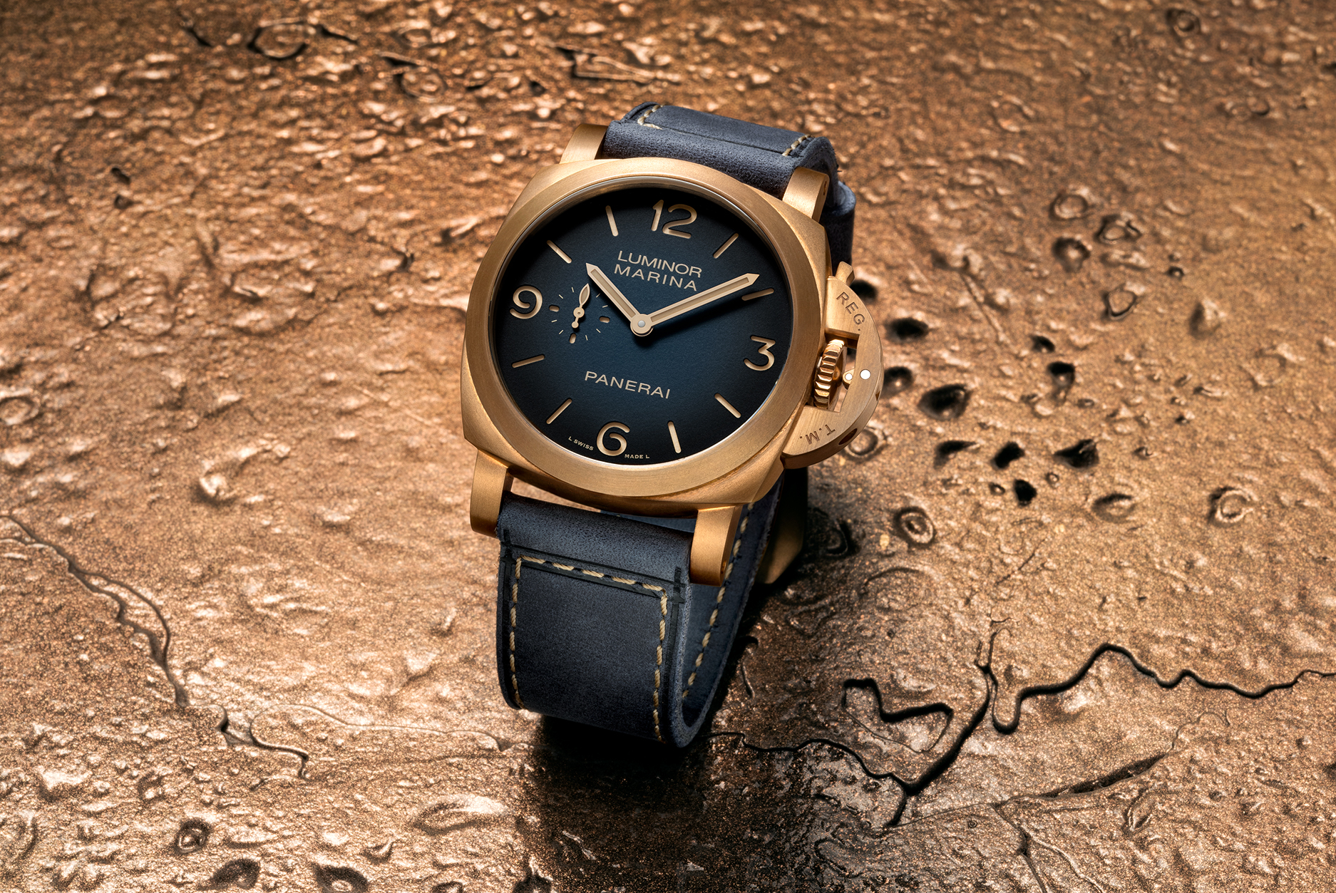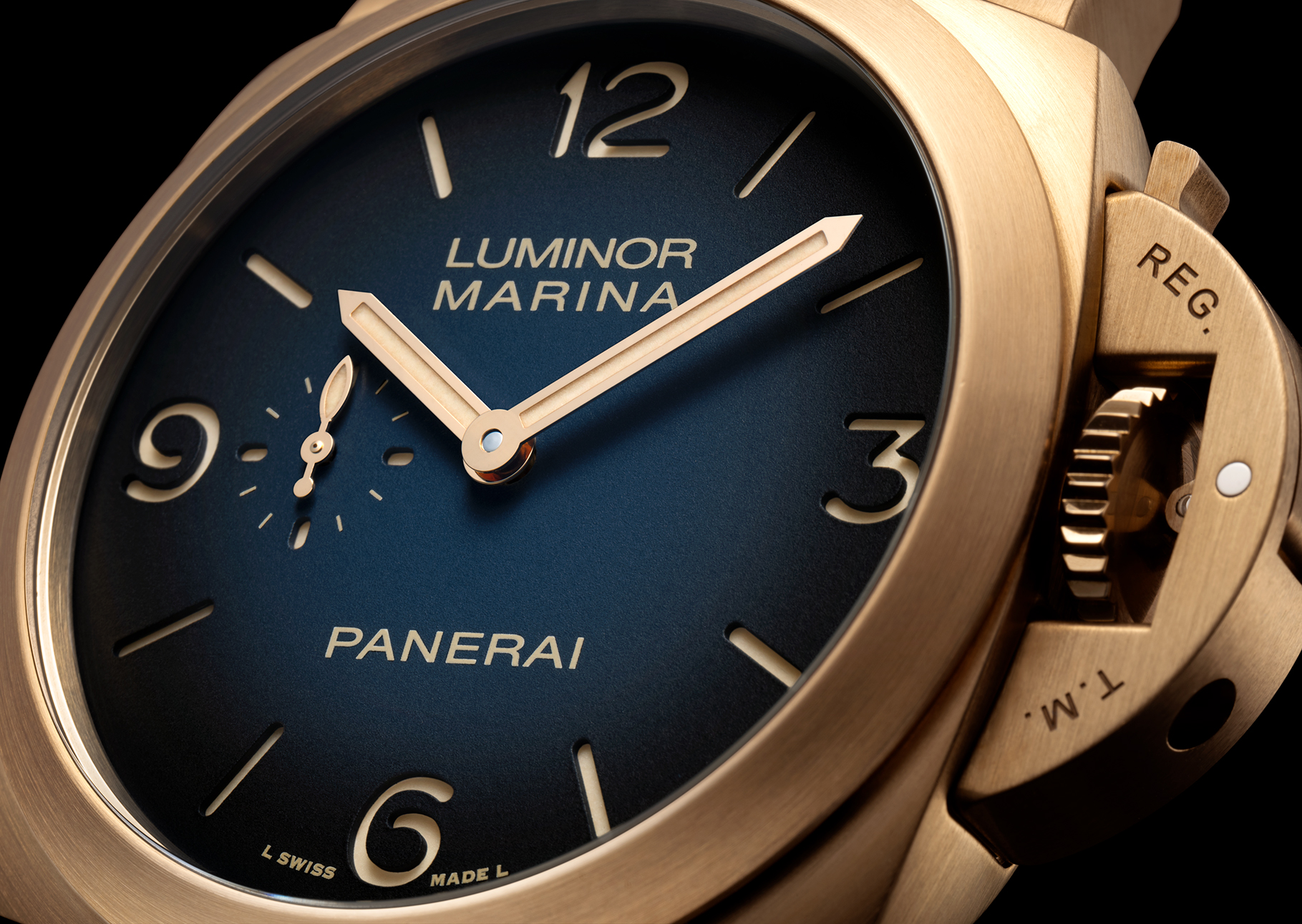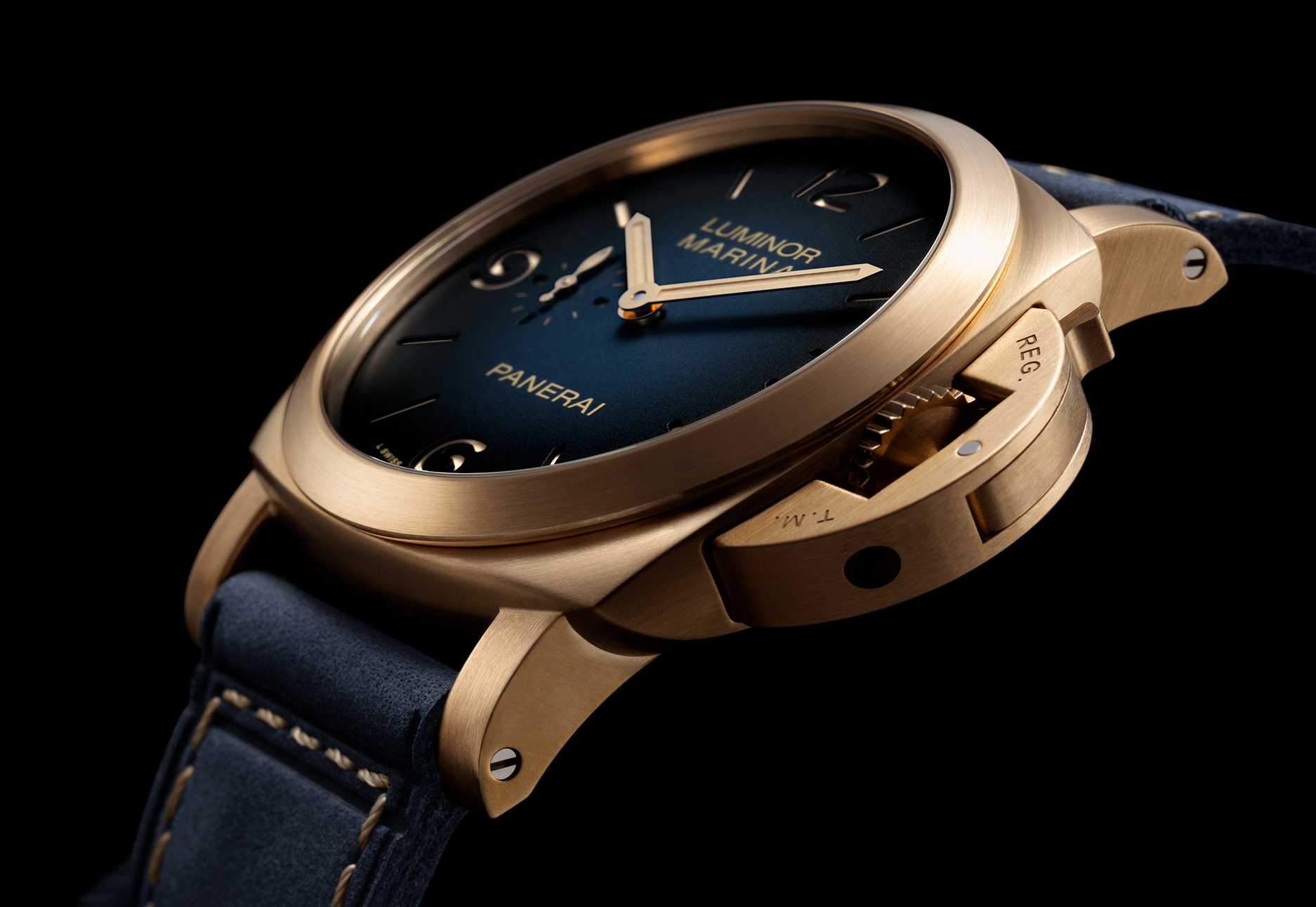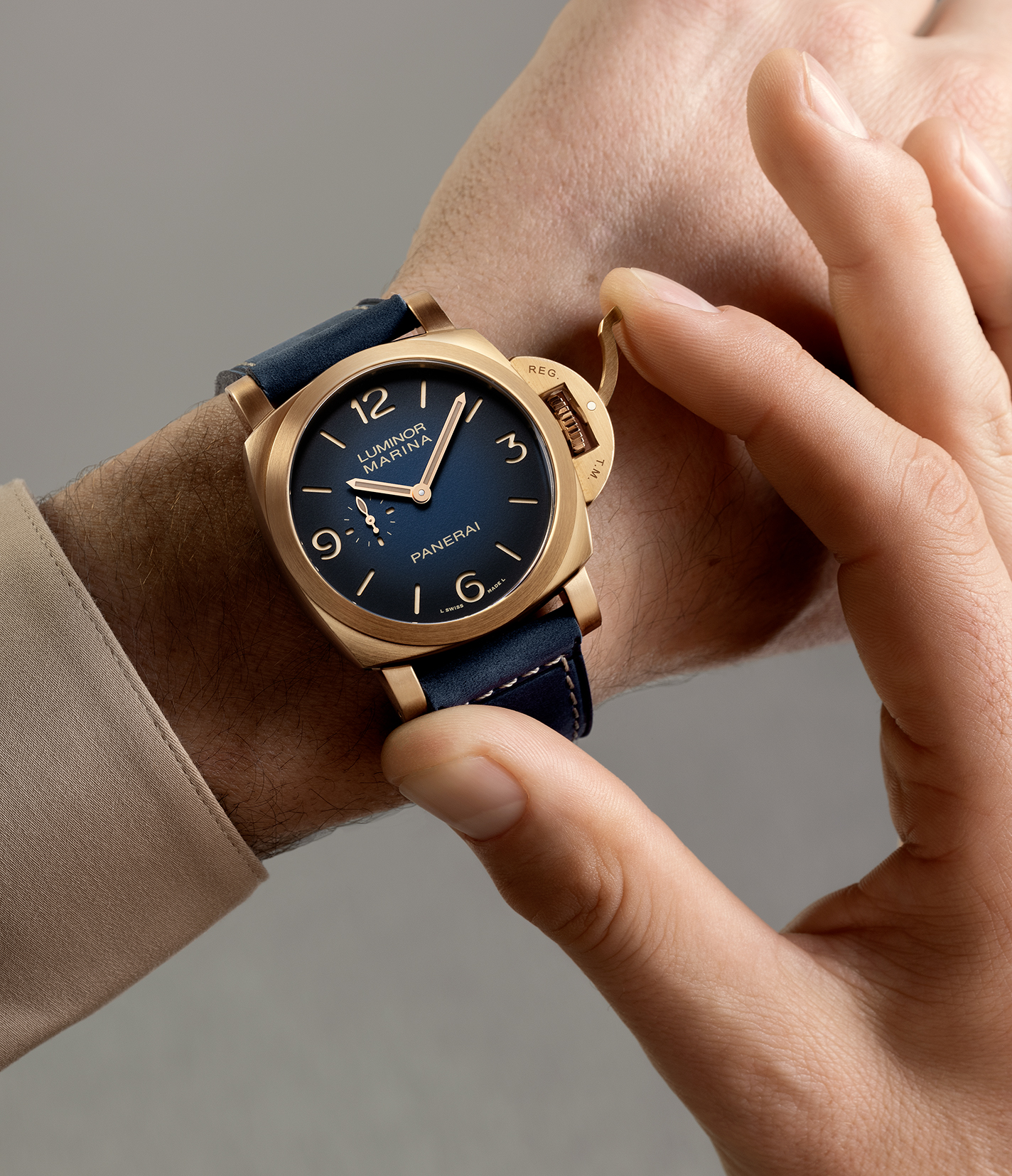 青铜的氧化过程独具魅力,每一只腕錶皆会随著佩戴者的生活轨迹而有不同的变化,进而形成与众不同的外观。錶壳最初呈现暖金色,在与空气、湿度、热量和摩擦等外部因素相互作用之后,会逐渐形成铜绿。铜绿不会改变材质本身的特性,却能在保护材质的同时赋予每只腕錶独树一帜的个性。 全新 Luminor Marina 系列青铜腕錶 ( PAM01678 ) 集结了该系列的所有经典特征,并结合品牌前卫的设计美学与顶尖技术。