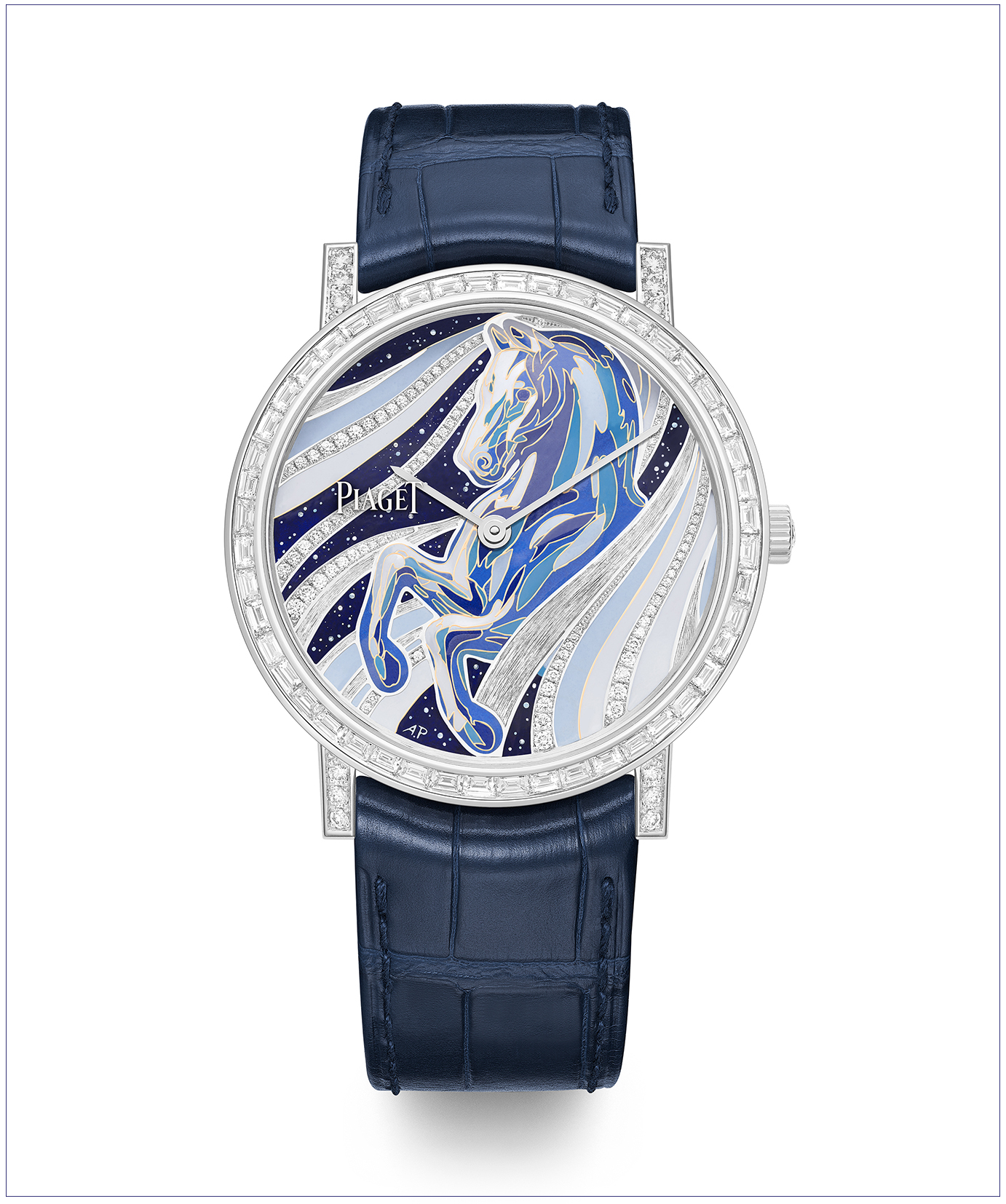 PIAGET 全新 Altiplano 系列丙午马年生肖限定腕錶,将骏马的自由与活力跃然于腕间。 并以手工雕刻、珐琅填彩与钻石镶嵌交织出骏马奔腾的动感画面,并搭载经典 830P 超薄机芯,在优雅比例之中凝聚澎涌动能,展现世家「 优雅不羁 」的制錶精神。