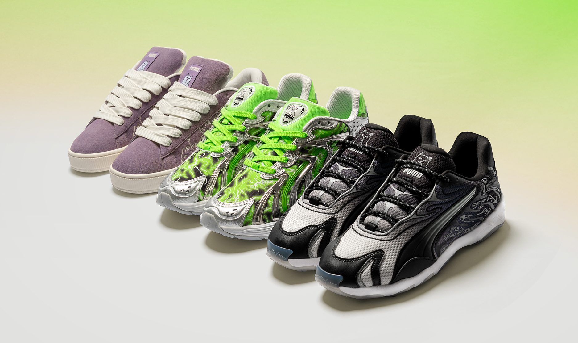 PUMA 再度携手美国恶搞街头品牌 RIPNDIP 推出第二个合作系列,延续街头滑板风格与 PUMA 经典运动基因混合,带来更多惊喜单品。