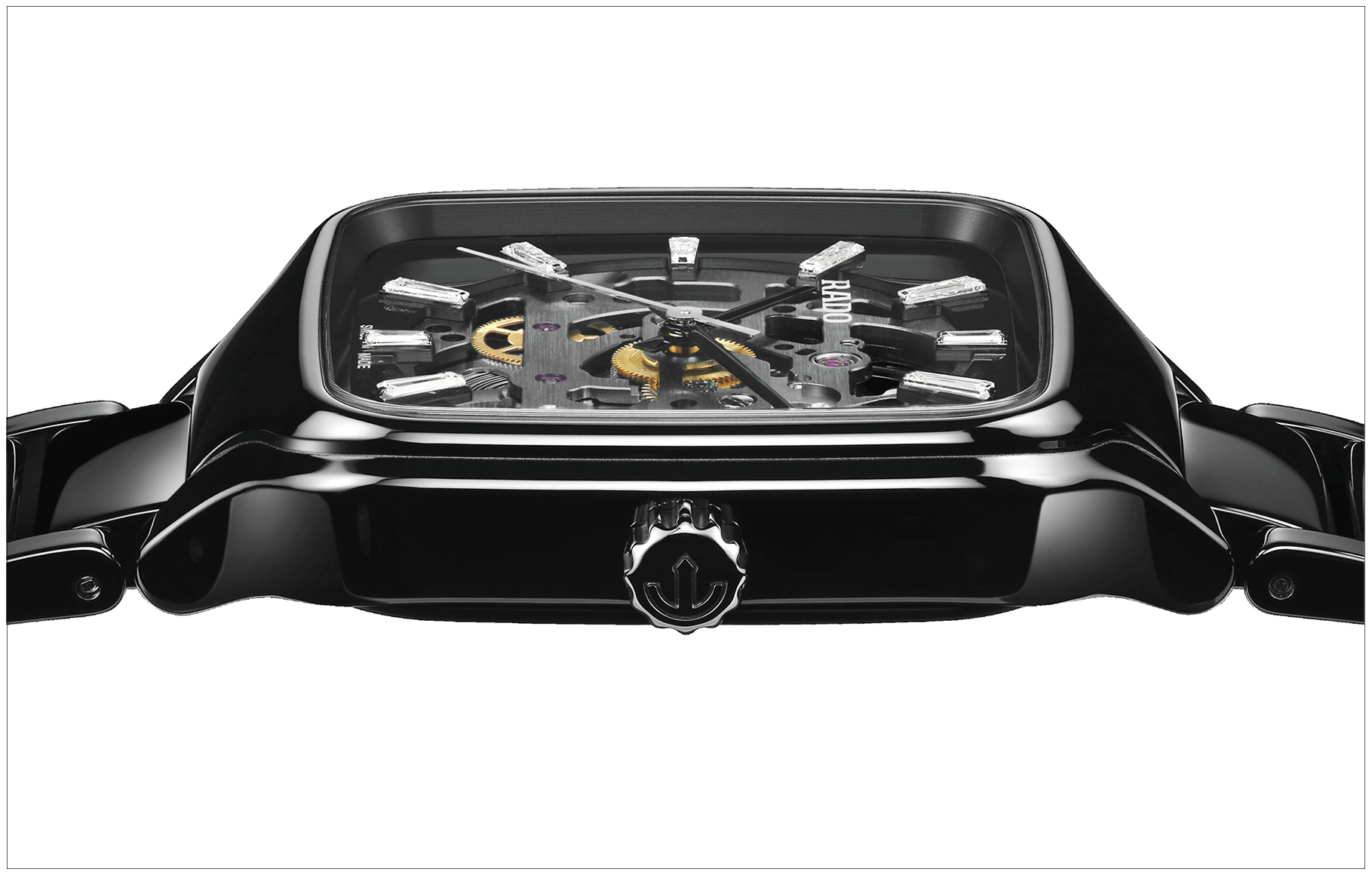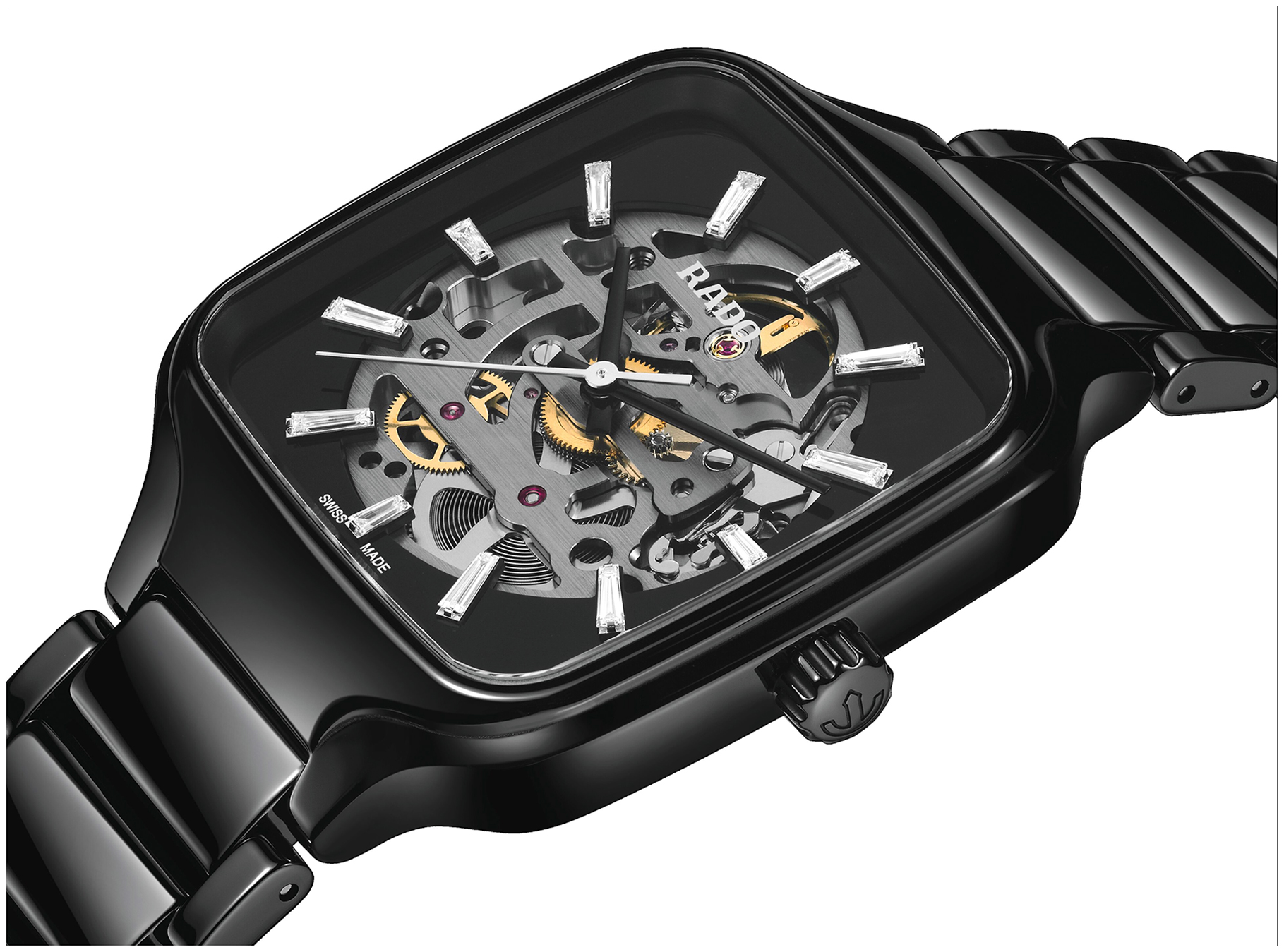 由于陶瓷的高硬度让其打磨修饰不易, 而 RADO 不仅以高科技陶瓷、 Ceramos™ 碳化钛金属陶瓷知名,一体成形表壳与鍊带的 True Square 真我方形系列更在棱角中保留了圆润,无论 360 度欣赏皆能观察到外型造工的细腻层次,展现品牌对陶瓷表款锻造的炉火纯青。
