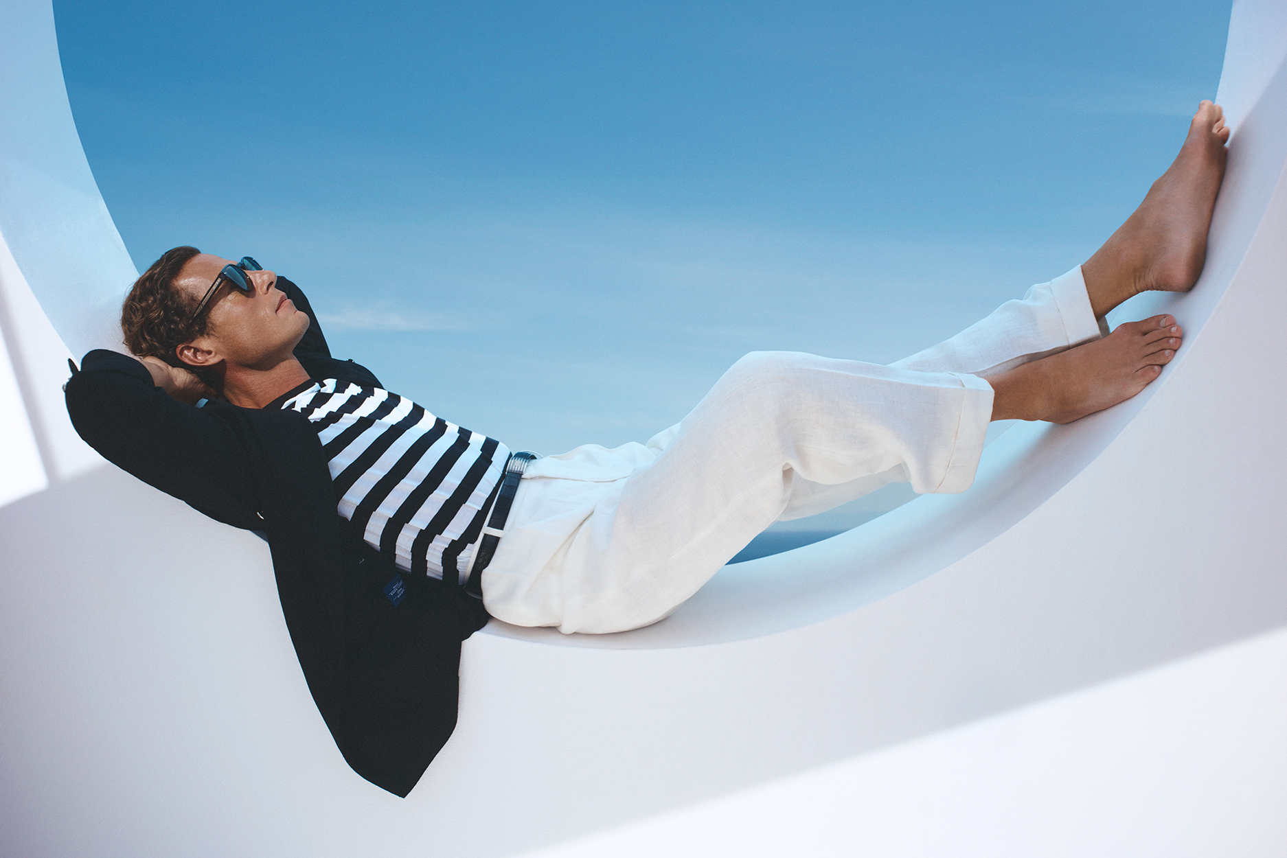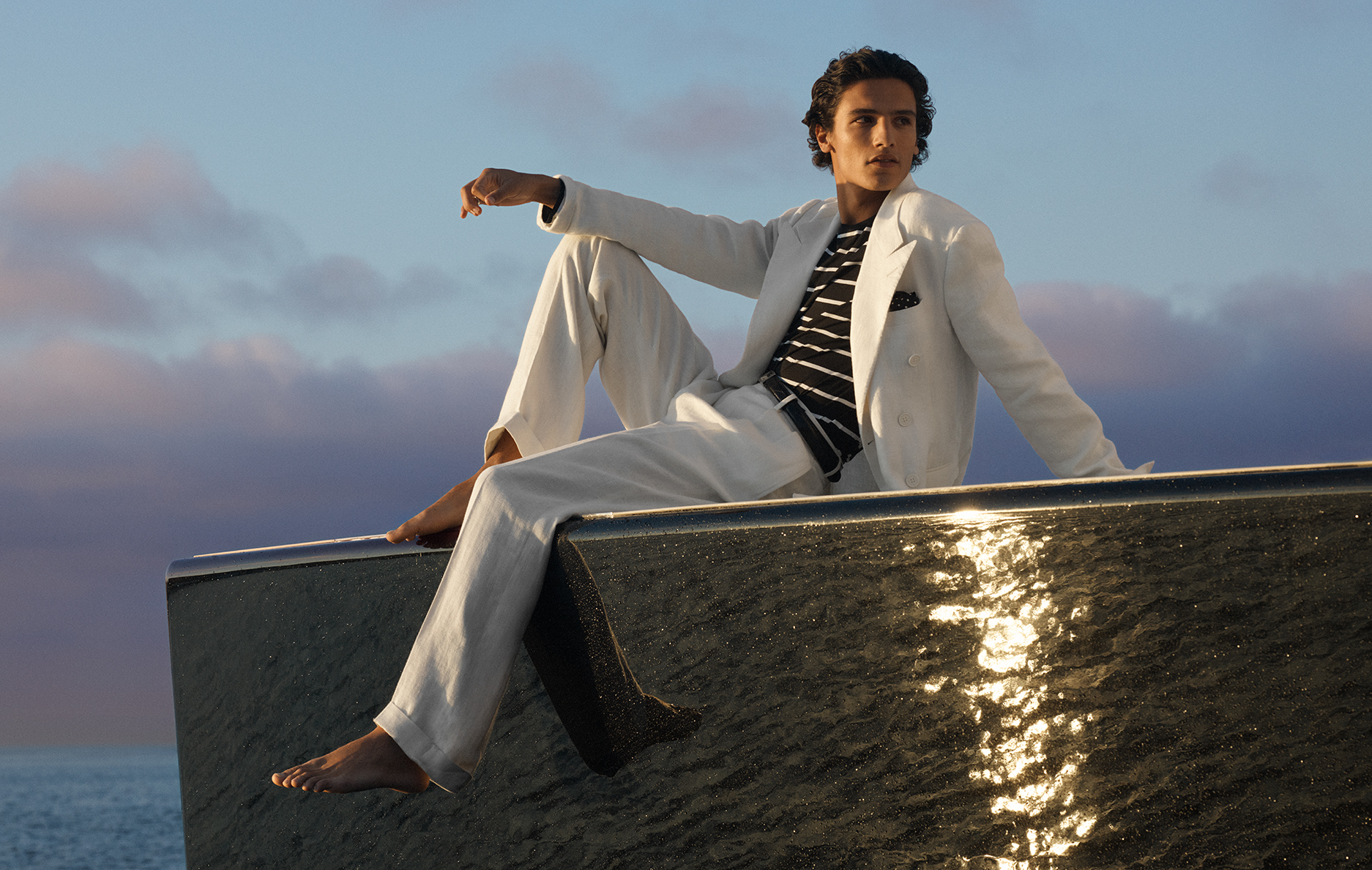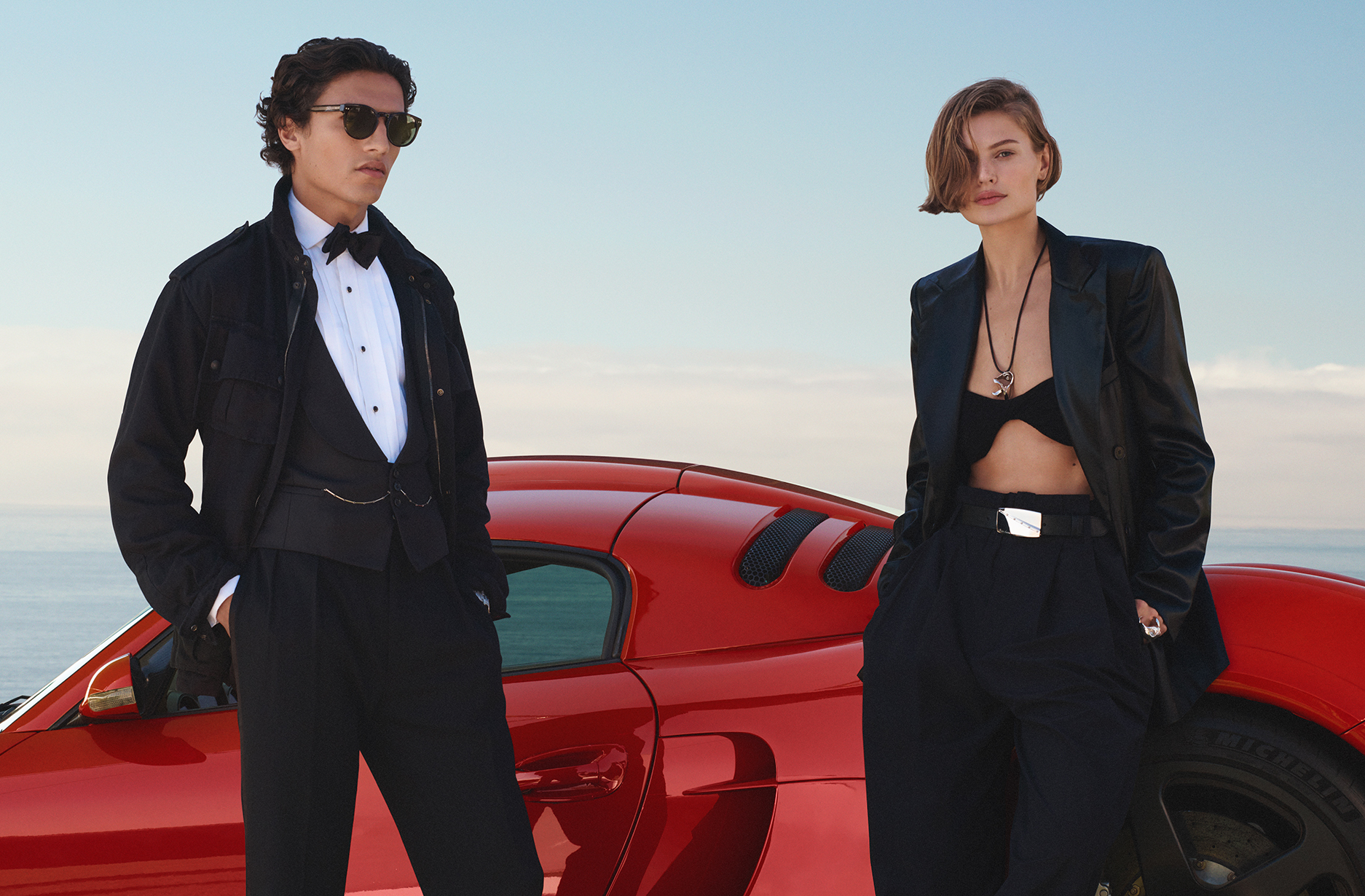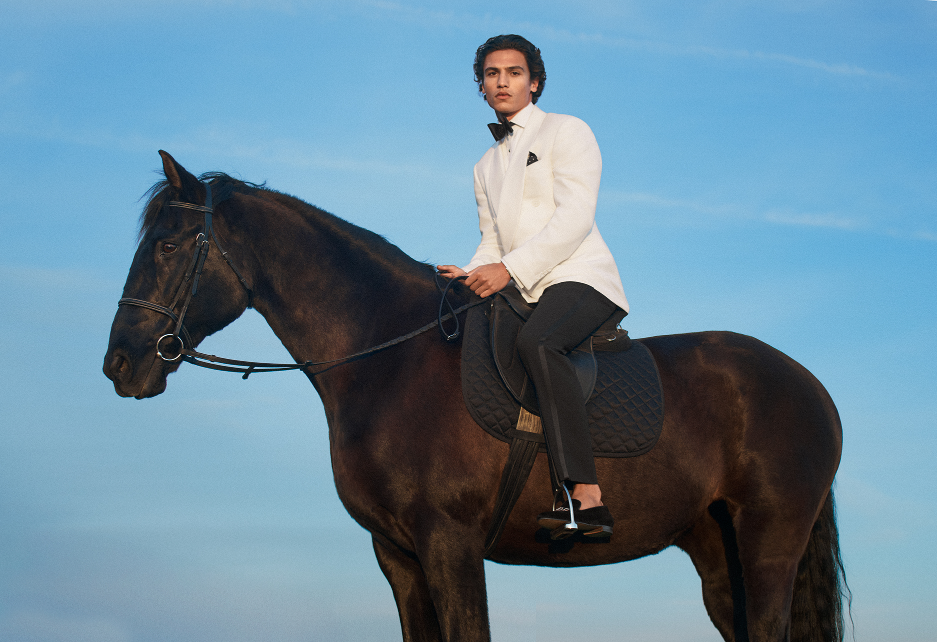 本季大片由摄影师 David Sims 执镜,并配合 Jacob Sutton 拍摄的宣传视频,共分为三个篇章展开:“ A World of Speed ”  通过抛光铬合金的光泽、蜿蜒的海滨公路和清晨的柔光,捕捉了赛车运动在现代精致语境下的张力;“  By the Sea  ” 颂扬航海的优雅,展现了快艇划破海面时,轻盈棉裙随风起舞,而剪裁精细的晚礼服则与快艇的锐利线条交相辉映;“ 绿茵风采 ” 则探索了马球、高尔夫和网球的纯粹世界,在这些领域中,运动本身便是活力、格调与传统的象征。
