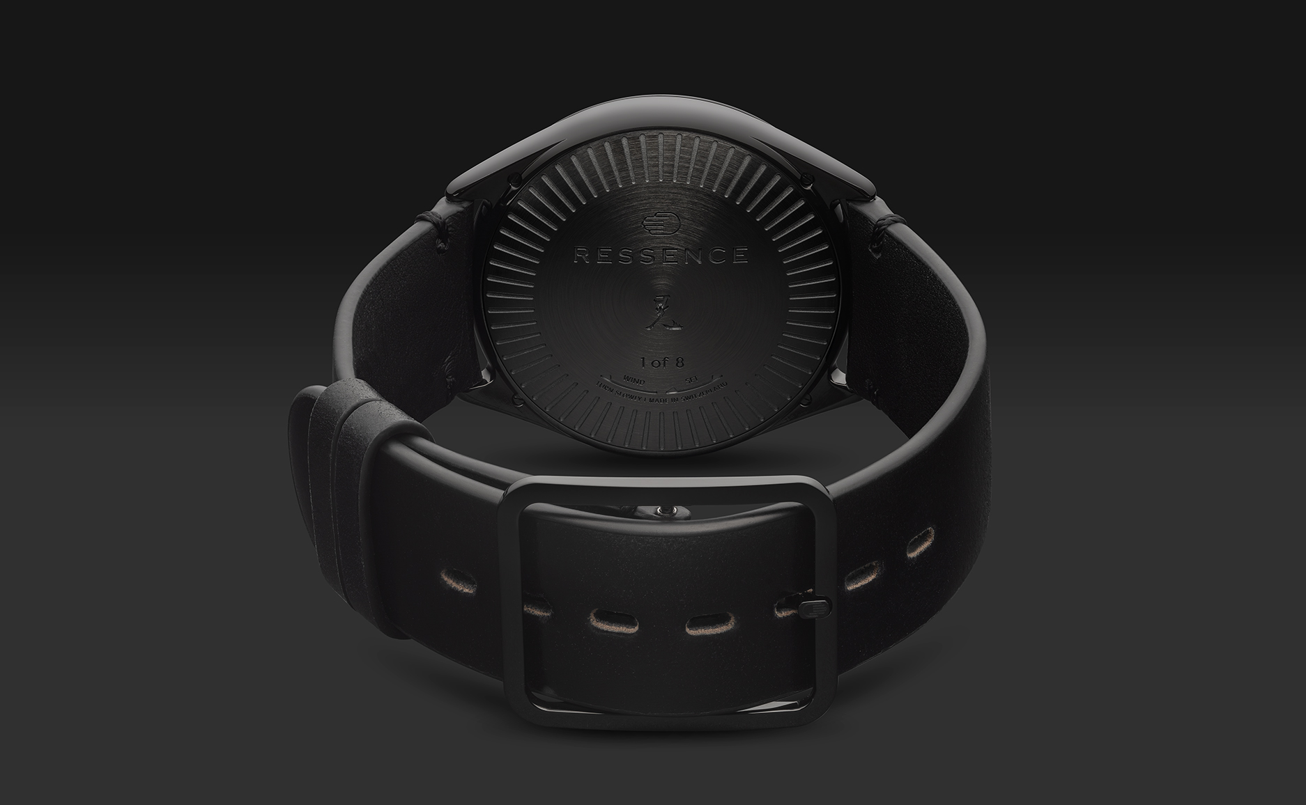 錶盘经手工镶嵌螺钿与日本大漆处理,每一片薄如蝉翼的贝片皆须润化后贴合曲面,再反覆研磨抛光,工序繁复。 设计为黑色亮面马皮錶带与钛金属针釦,则维持了整体视觉的低调张力,连结 RESSENCE的核心内涵。