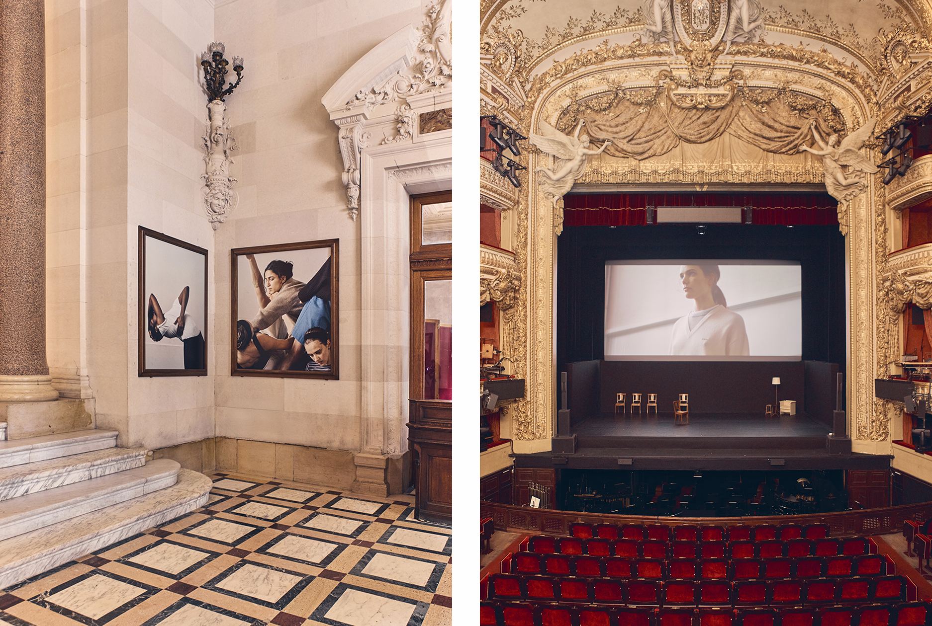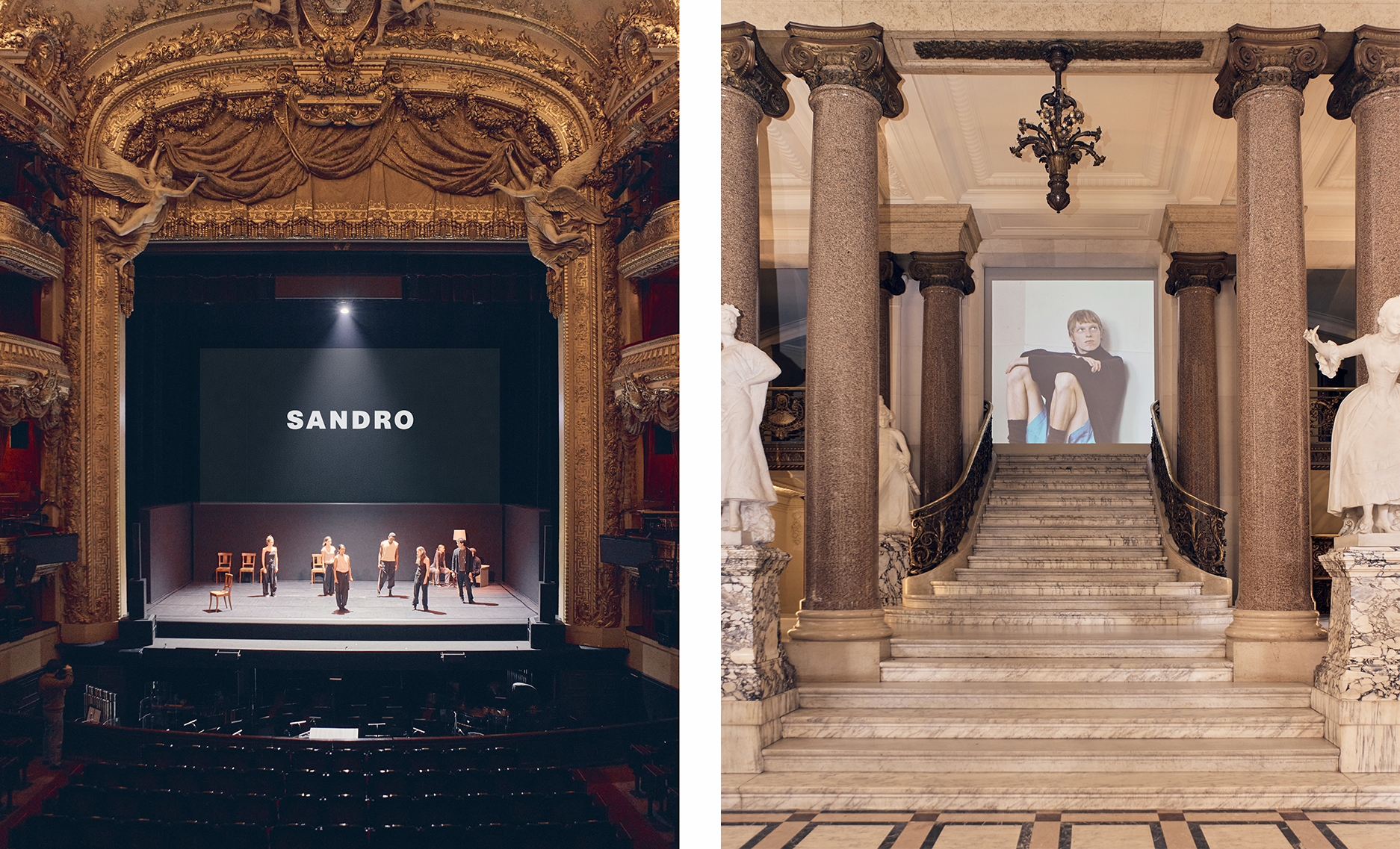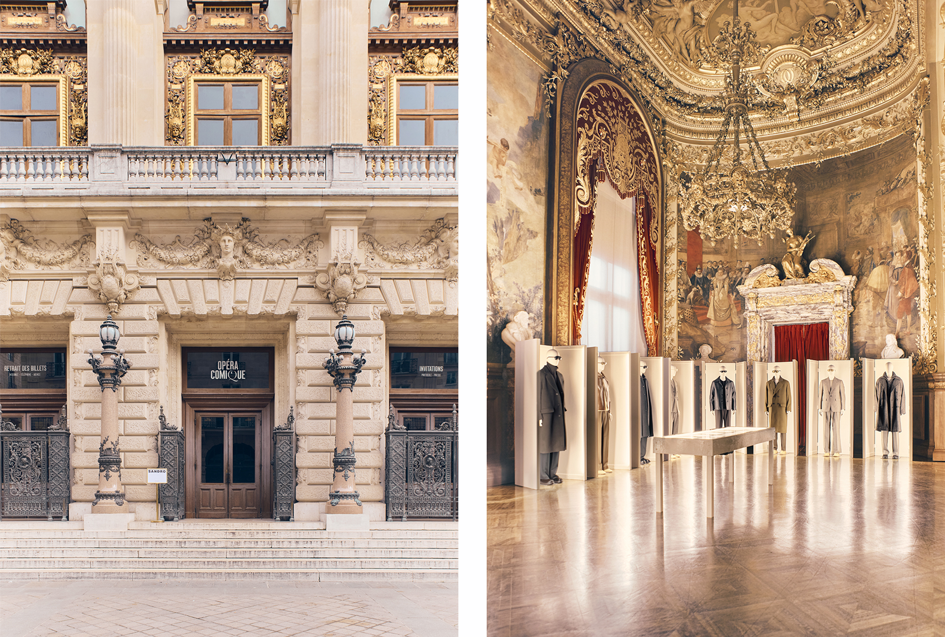 SANDRO 2026 秋冬系列进驻巴黎最富盛名的传奇学府——巴黎喜歌剧院  ( Opéra Comique ) ,开启了一场文化传承与现代律动的邂逅。  从私人沙龙到后台重地,全新系列通过一场沉浸式旅程悉数呈献。全天候的现场舞蹈表演赋予了服装廓形鲜活的生命力,在时尚与表演艺术之间,展开了一场极具锋芒的对话。