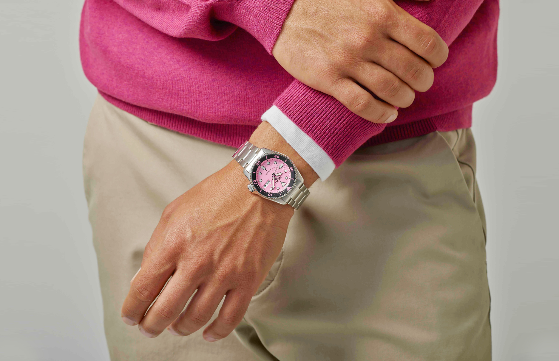 SEIKO 再次发挥联乘实力,旗下以年轻、多元文化为核心的 Seiko 5 Sports 系列, 找来家喻户晓的经典角色 Pink Panther( 傻豹 ),推出以粉红色作主调的全新 SEIKO 5 Sports SKX 限量腕錶 ( 型号: SRPM07K1 )。外表看来轻松玩味,细看之下却处处见心思,将动画世界中的幽默、叛逆与戏剧张力,浓缩于腕间。