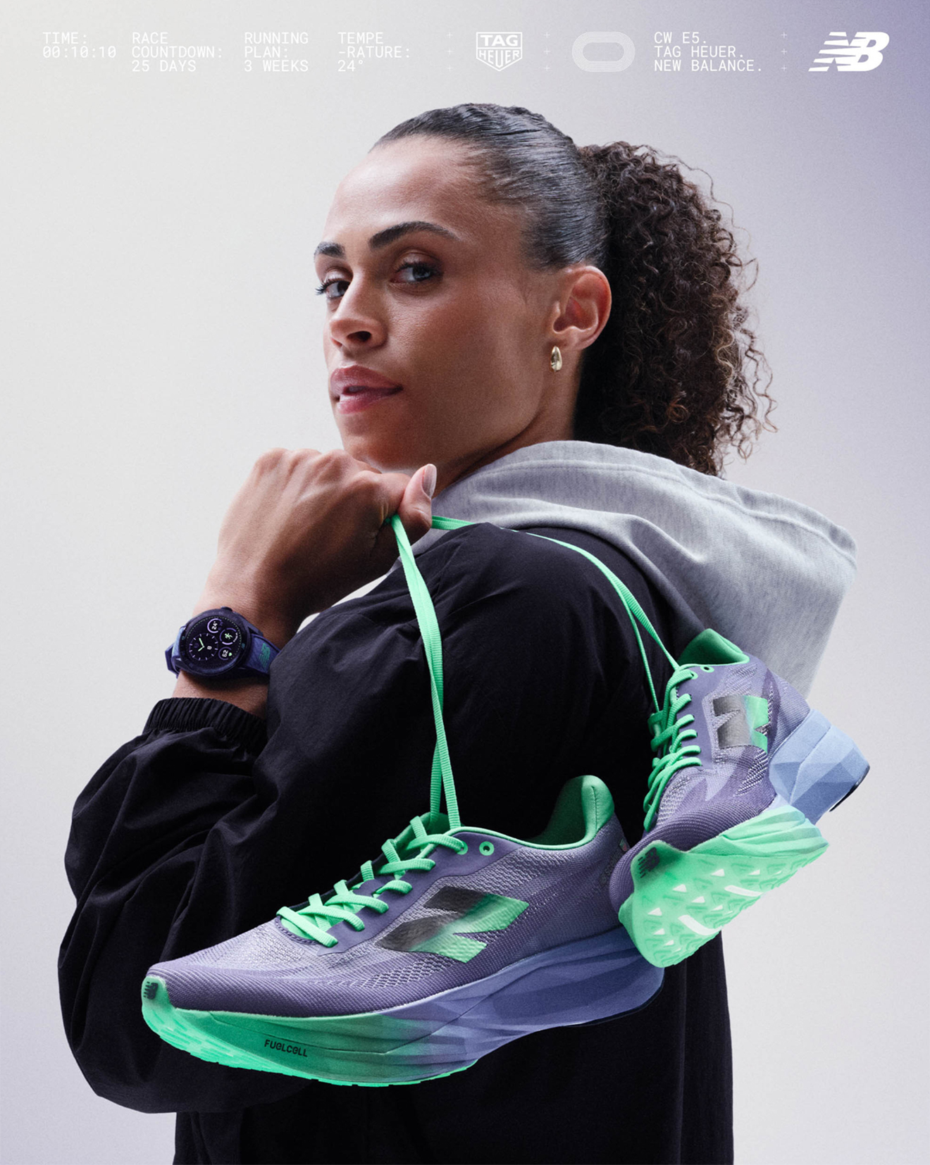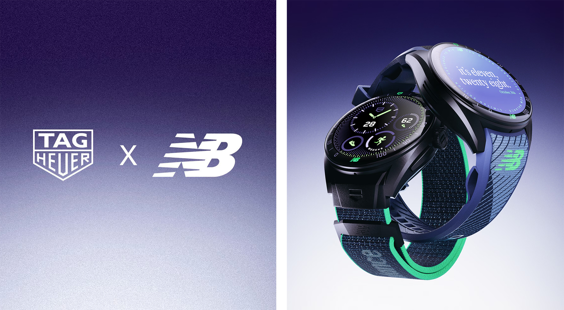 TAG Heuer 首度跨界携手 New Balance 推出联名款 Connected Calibre E5 智能腕錶,将瑞士制錶专业与对跑步动态完美融合,展现顶尖工艺与运动精神的全新高度。