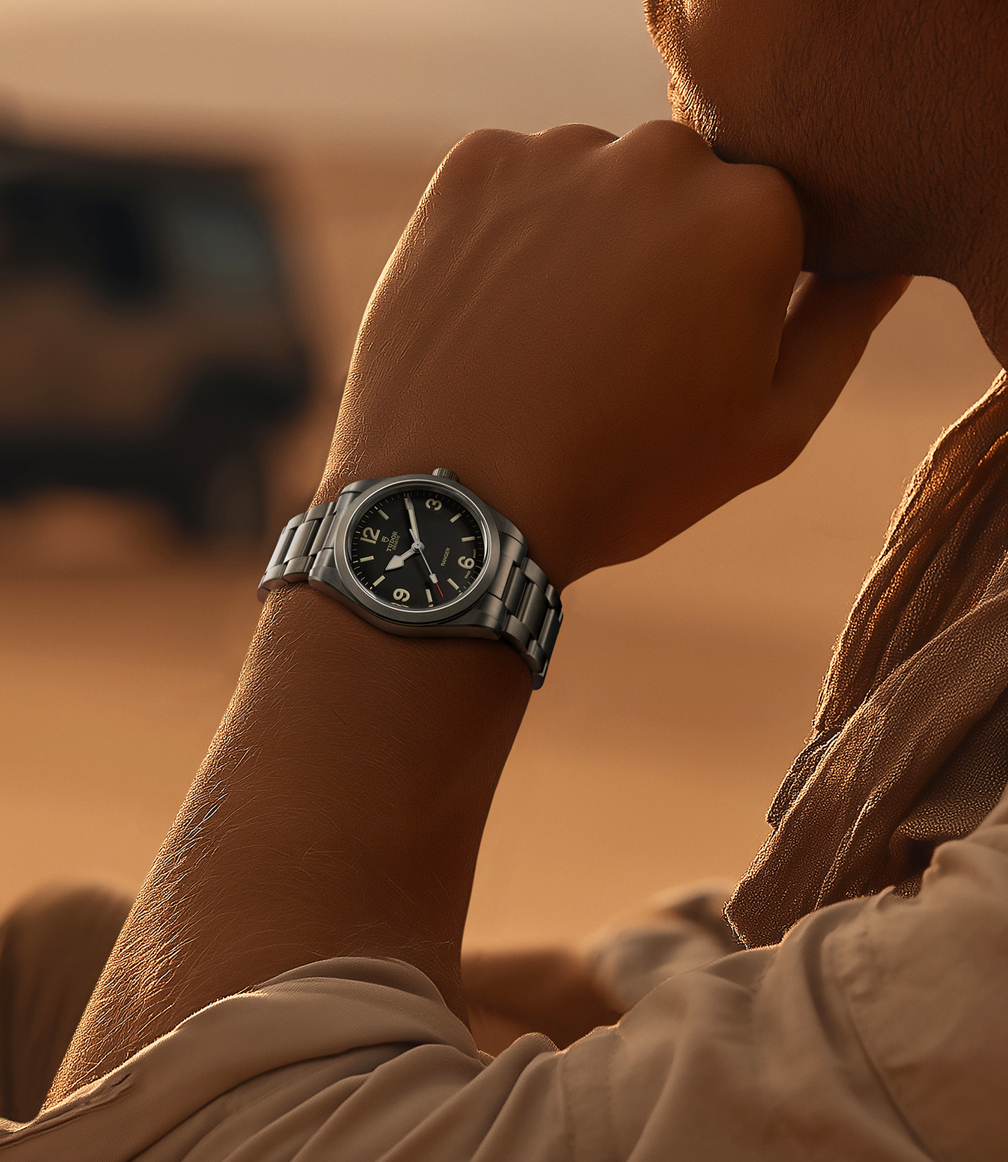 第二个重要更新则是全新的「 沙丘白 」面盘,这是 Ranger 系列第一次采用浅色面盘设计,与常见的亮白不同,这个色调带有些许砂质质感,略微颗粒、呈现雾面效果,灵感来自达卡拉力赛 「 Dakar Rally 」穿越沙乌地阿拉伯沙丘的景象。视觉呈现相当克制,却又带有一种自然粗犷的气氛,也难怪许多玩家第一时间联想到传说中的劳力士 Explorer 1016 “ Albino ”。
