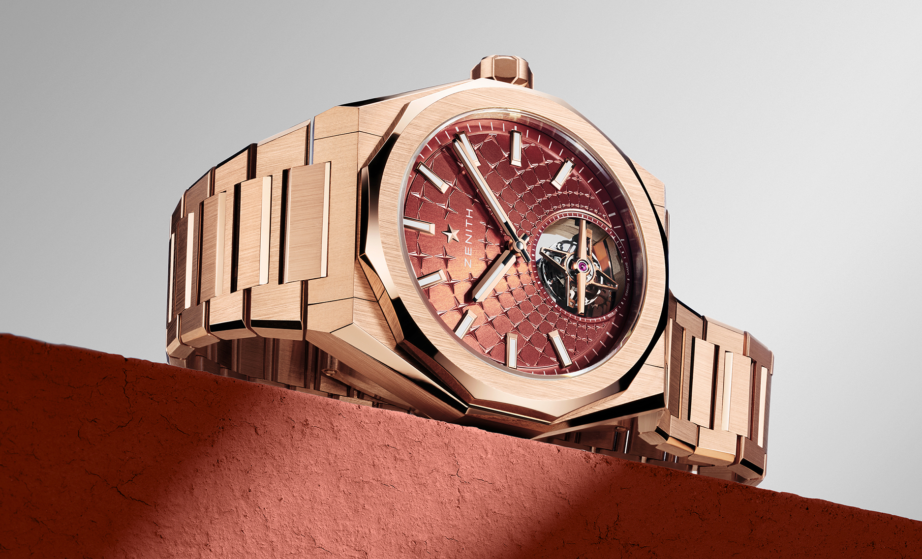 在佩戴体验上,手錶搭载一体式玫瑰金鍊带,H形链节由宽至窄,流线自然贴合手腕,佩感平衡且稳定, ZENITH 开发的快拆系统让佩戴者可随时更换随附的砖红色橡胶錶带,轻松在正装与休闲之间转换风格,这种灵活配置,使手錶能与日常风格共存,不会只是被藏在錶柜的收藏品。