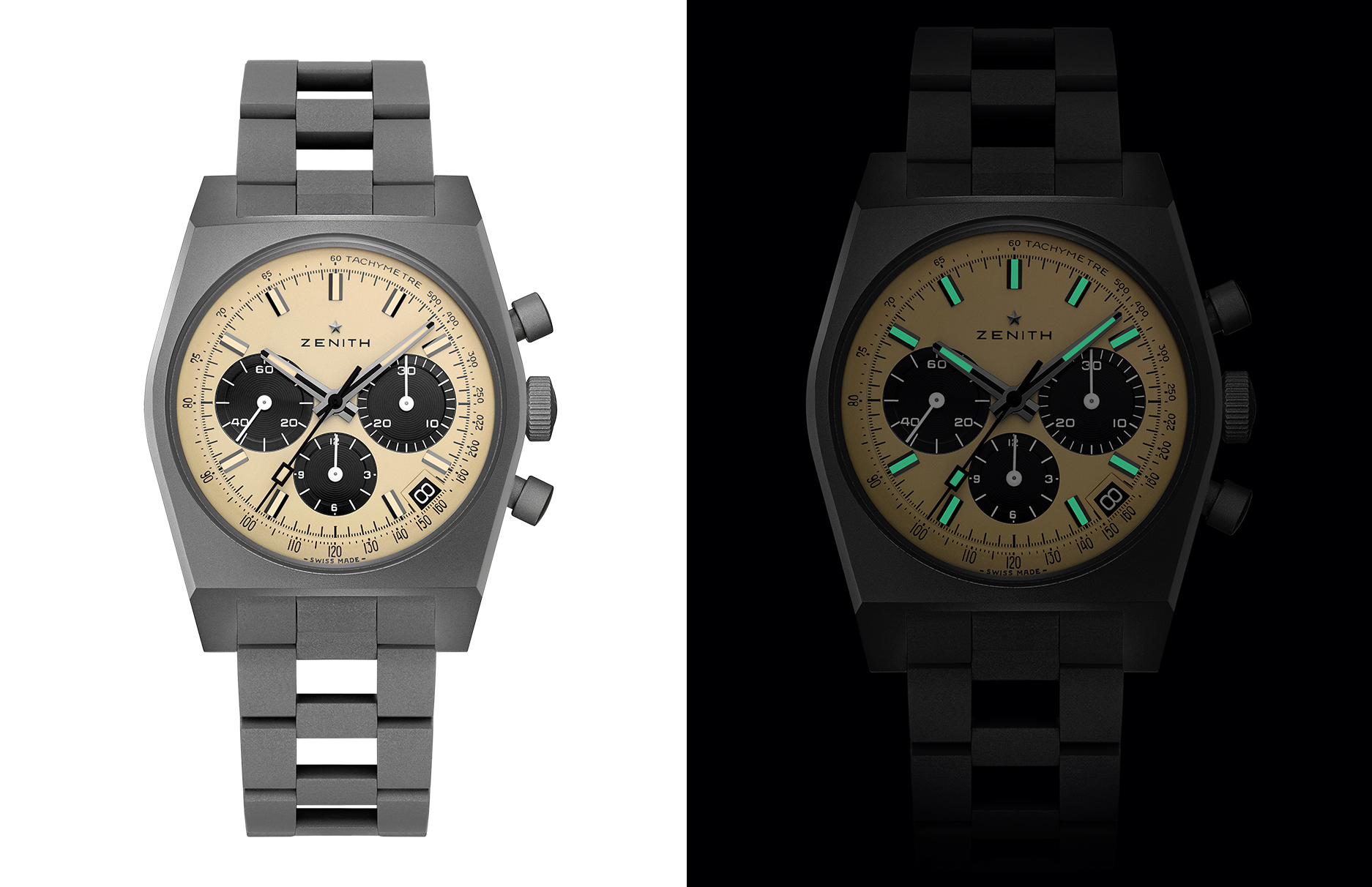 最后要说说这条阶梯式鍊带,它由 Gay Frères 在 1969 年设计,是 ZENITH 的珍贵经典元素,全新的喷砂钛金属版本,使鍊带的轻盈度和复古造型充分兼容,也与錶壳的雾面质地连为一体,佩戴时相当服贴,不会有突兀的重量感。 錶款限量 200 只,近期已率先于东京首发,之后再于全球真力时线上或实体通路上市。无论是不是《 Lupin III 鲁邦三世 》的粉丝,这款手錶都有足够的设计说服力, 是 Revival 系列中风格最成熟、角色感最鲜明的一款。 售价马币 RM 51,500.00